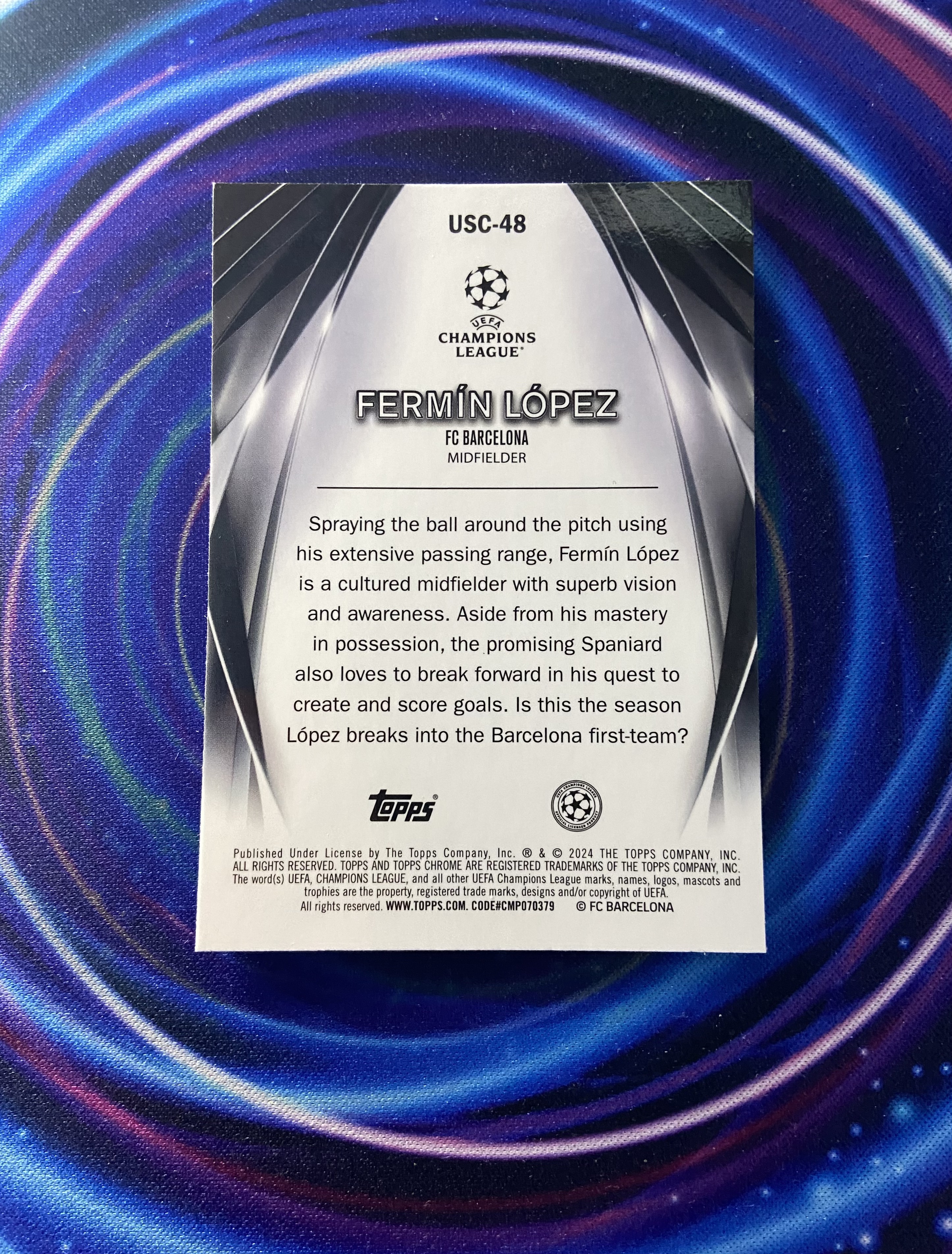 2024 Topps Chrome Fermin Lopez RC 欧冠 巴塞罗那 新秀 费尔明 洛佩兹 终极舞台特卡 泡泡折 折射 西班牙 未来可期 实卡精美 收藏必备【万卡收藏-BLZ】