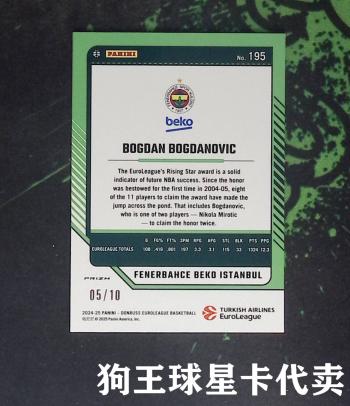 【狗王球星卡代卖规则】:1、关于卡片:所有卡片均为卡主委托本店代卖,所有图片均为实拍图。2、关于卡品:印刷线、胶印;厚卡白边、白角、毛边;薄卡印刷油口、小程度弯曲等均属出品厂商问题,非人为因素造成,可站内客服获取高清图及视频;默认打包lot卡片不保障卡品。出价即视为接受卡品。重大瑕疵会标注细节,原则上不退货(产生争议可走卡淘流程),如有卡品要求请购买评级卡!3、关于卡具:所有卡片均含卡膜,单价超过100元的卡片会配备卡具,如需购买卡具请站内留言4、关于支付:均为线上支付,请中标卡友于3日内支付,超期本店有权向卡淘发起投诉。5、关于邮寄:所有卡片在付款后3个工作日内均按默认地址发出(如需变更地址,请自行在付款界面变更收货地址),本店默认使用顺丰快递,邮费:湖南省内12;其他省份18,偏远地区一律到付(如需保价请联系客服)(默认首重2KG,LOT超重另计)。6、本店不提供交换板代刮业务,请见谅!