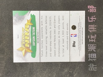 【肿猫球星卡潮玩俱乐部】实体店铺,信誉保障。购买须知:①所有卡的品相为通行品如有重大品相残次问题会在描述中注明。木盒、手提、国宝、IMM、Noir、小真金等等厚卡系列的卡片,有轻微白边白角属于正常品相,折射卡、镜面卡有机械划痕、印刷线属于正常品相,所有卡片不保证后续评级分数。②拍卖卡片不含卡具,自带官方原封砖、原封夹的除外,收到有卡具属于赠送性质,不接受因卡具问题维权,带有原封卡砖、卡夹的卡不保证卡品介意勿拍。③卡片截标后请于3日内通过卡淘线上进行付款,本店保证付款后24小时之内发货,3日内不付款第四日关闭订单,不接受后续协商重开,请免开尊口,本店所有卡片均不支持累计。④签收时请拆封仔细检查卡片品相并录制拆箱视频以便佐证,如果有疑问请于快递签收3日内通过内站内信联系客服,超过3日客服将不予受理。如若遇到快递运输造成卡品损坏与丢失问题,属快递公司的工作失误,本店不予赔偿,但会积极配合买家追诉快递公司的赔偿责任,协助买家将损失降到最低。发货时默认卡淘后台收货人信息,如有其它收货地址,请付款前私信客服提供地址,因地址问题发生纠纷请参考卡淘平台规则。为保证服务质量,本店发货只发顺丰陆运寄付,运费18元,超过首重退运费发顺丰到付,偏远地区(如海南、新疆、西藏、青海、甘肃、内蒙古、云南、广西、宁夏、江西、贵州、港澳台地区)顺丰到付。本店卡淘客服工作时间为:每周一~周五 9:00-17:00,按国家法定节假日公休,由于卡淘工作量巨大,如有怠慢请谅解。更多了解,欢迎加入官方QQ群(天津肿猫球星卡:637855320),店内微信客服(肿猫客服:13001360442)