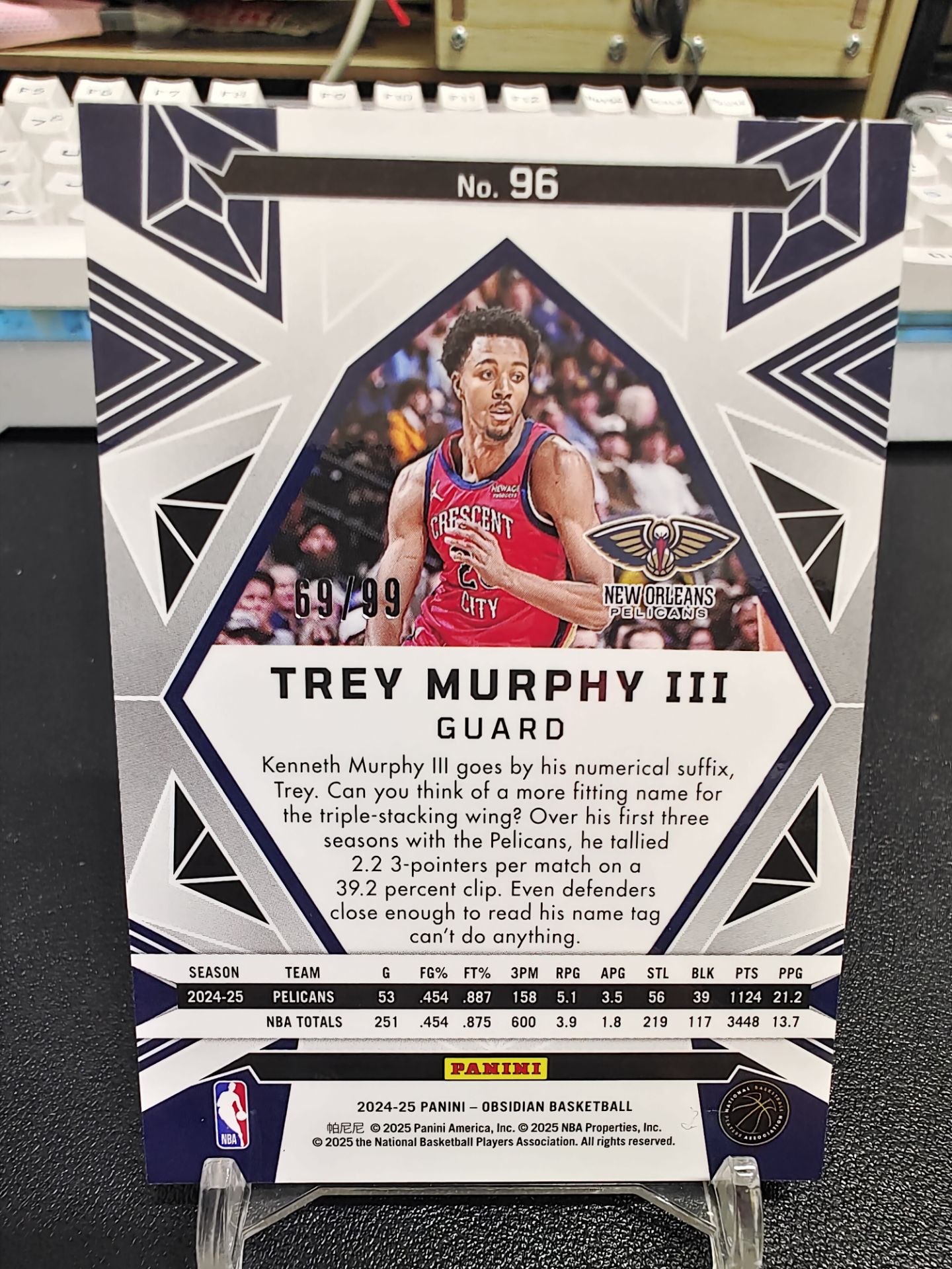 【浩行拍卖 截标预付82%】2024-25 panini obsidian trey murphy iii 黑曜石 鹈鹕 特雷 墨菲三世 铜折 折射 69/99编 专收必备 瑕疵看图「制令」1118E01恁