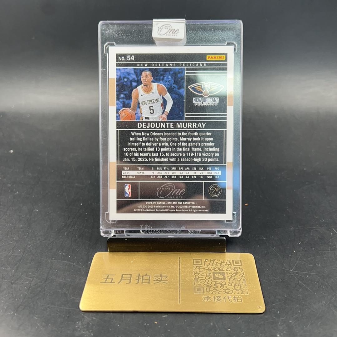 2024-25 Panini One and One Dejounte Murray 【五月拍卖 顺丰空运】德章泰 默里 穆雷 2/10编 金折 鹈鹕 老鹰 原封砖 收藏必备 卡品如图 夏哥x10