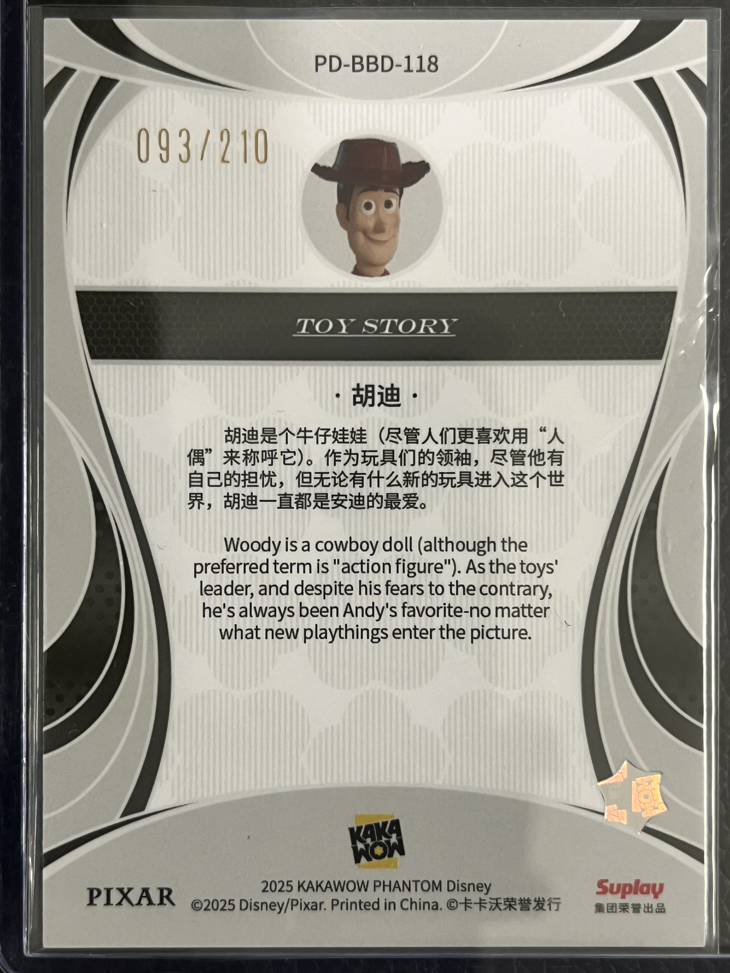 卡卡沃 2025 KAKAWOW PHANTOM 迪士尼系列收藏卡 基础卡-波点折 Jimmy(18A)93/210编 卡号118 胡迪 Woody