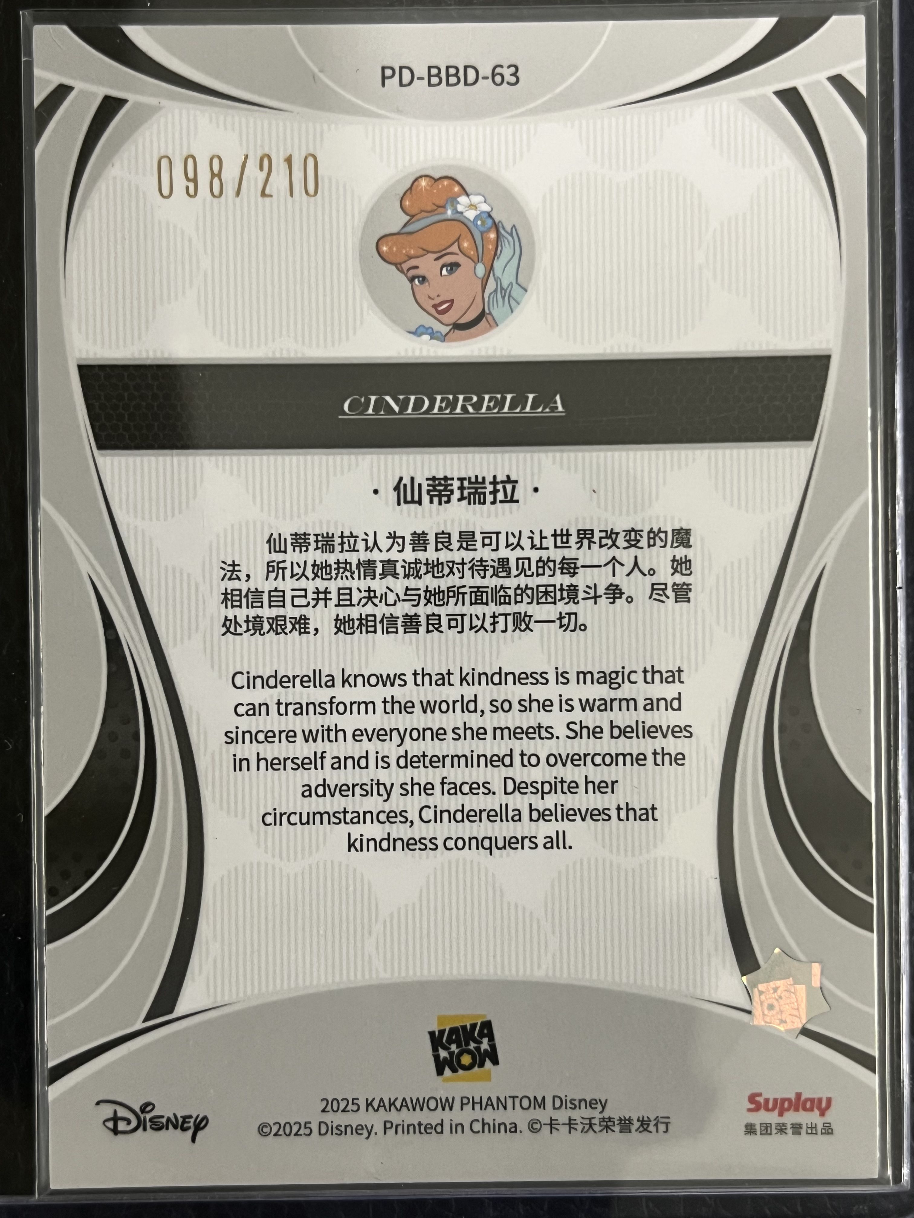 卡卡沃 2025 KAKAWOW PHANTOM 迪士尼系列收藏卡 基础卡-波点折 Jimmy(18A)98/210编 卡号63 仙蒂瑞拉 Cinderella