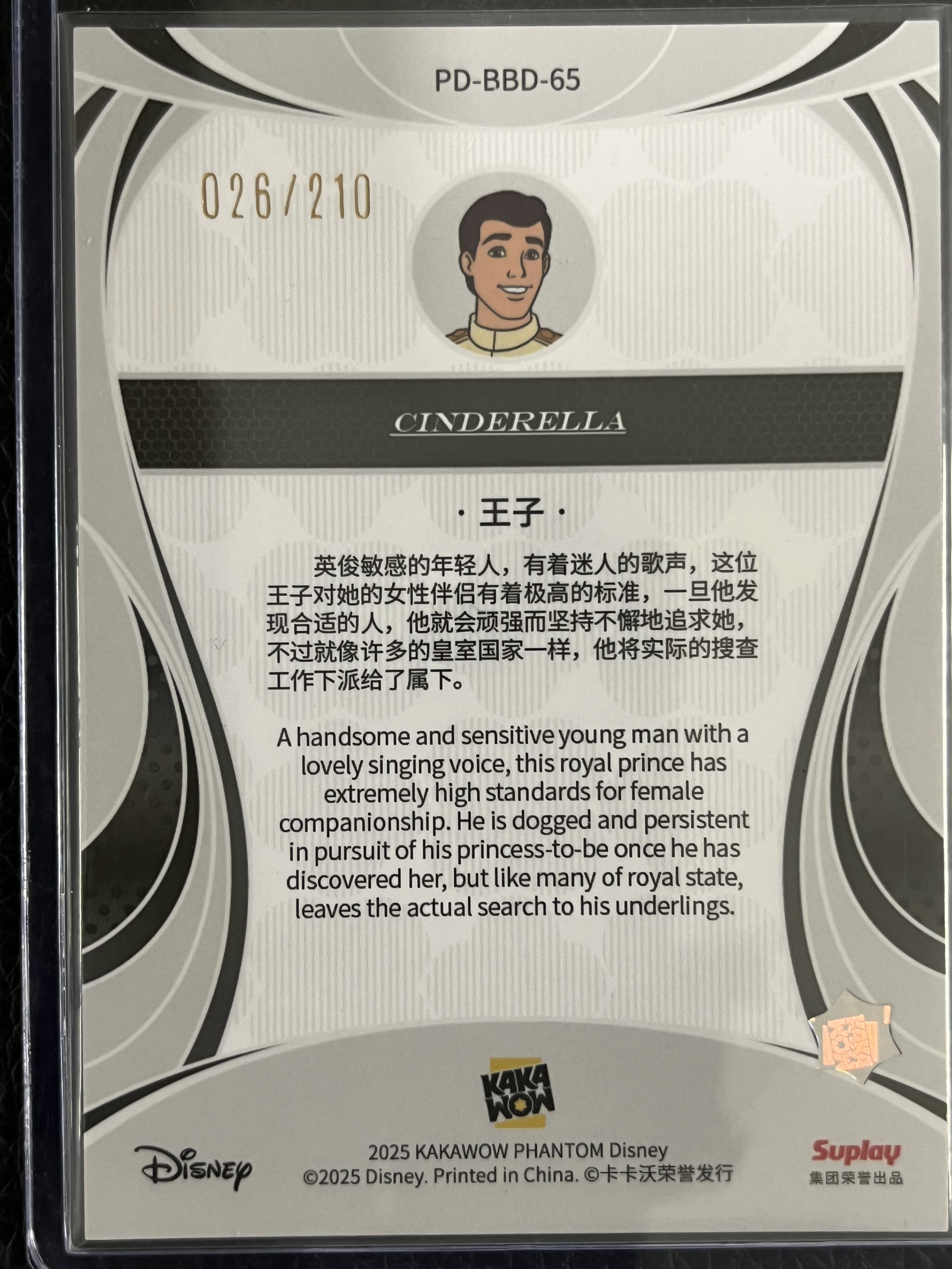 卡卡沃 2025 KAKAWOW PHANTOM 迪士尼系列收藏卡 基础卡-波点折 Jimmy(18A)26/210编 卡号65 王子 Prince Charming