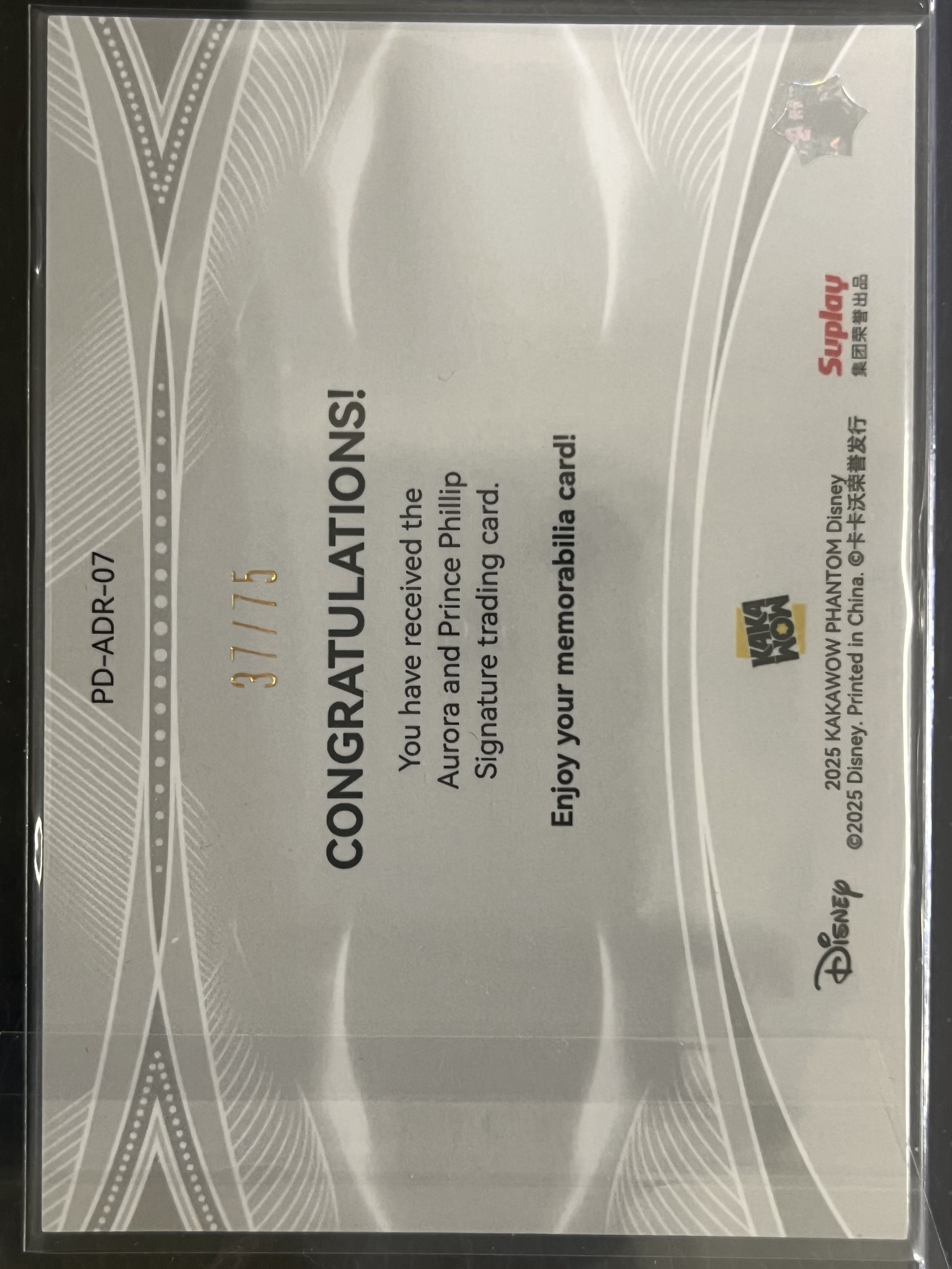 卡卡沃 2025 KAKAWOW PHANTOM 迪士尼系列收藏卡 双签-红 Jimmy(18B)37/75编 卡号7 爱洛公主 & 菲力王子 Aurora & Prince Phillip