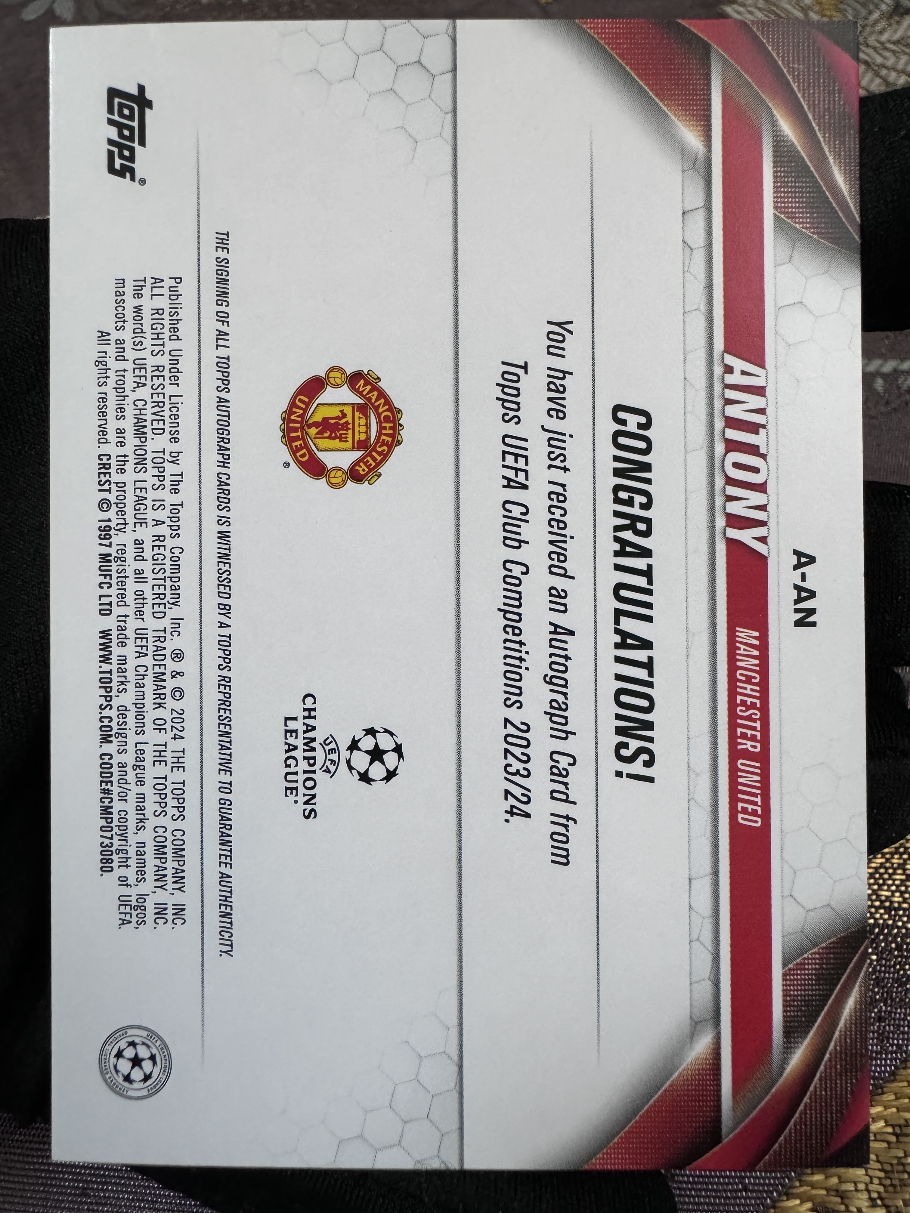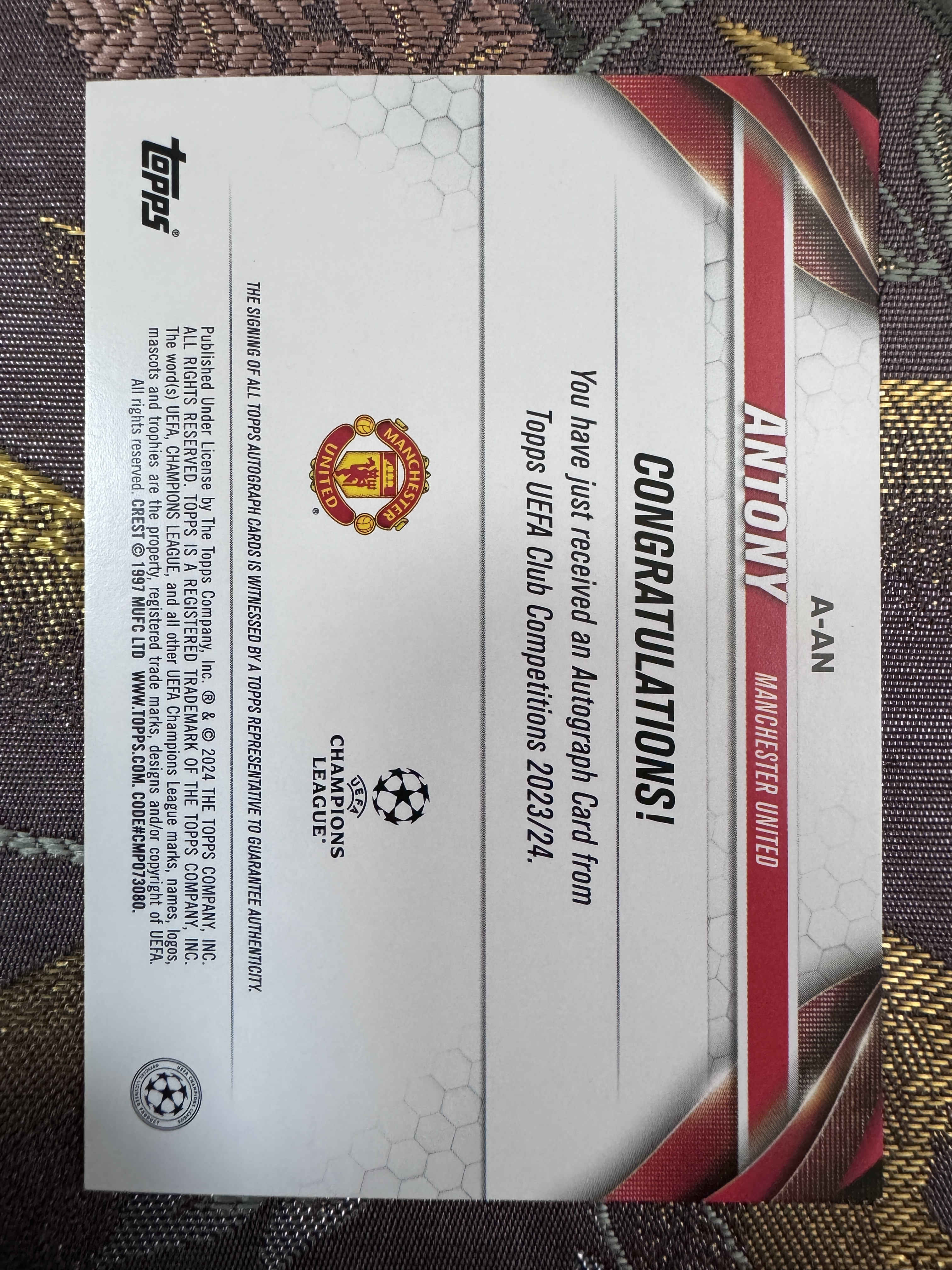 2024 Topps UCC Antony 【澈梦北霄球星卡社代拍】欧冠 UCC 碧玉 红魔 曼联 皇家贝蒂斯 巴西 亿元先生 安东尼 投资大热 神级表现 马上起飞 绿折签 签字 完美墨迹 实卡精美
