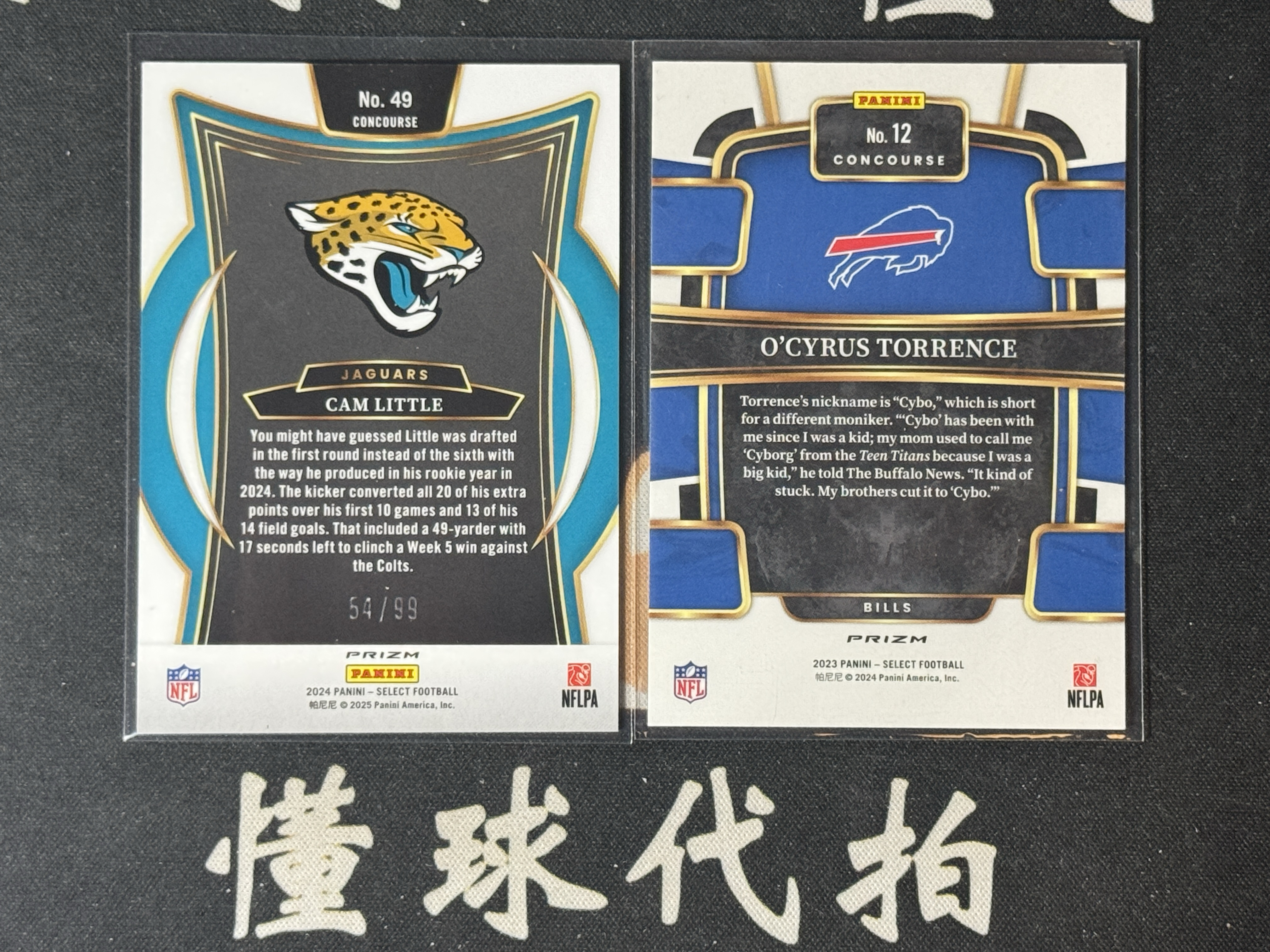 【懂球代拍】2024 panini NFL橄榄球select RC新秀 限量 99编 利特尔 美洲虎 149编 托伦斯 比尔 折射 值得收藏 DQ079J 005