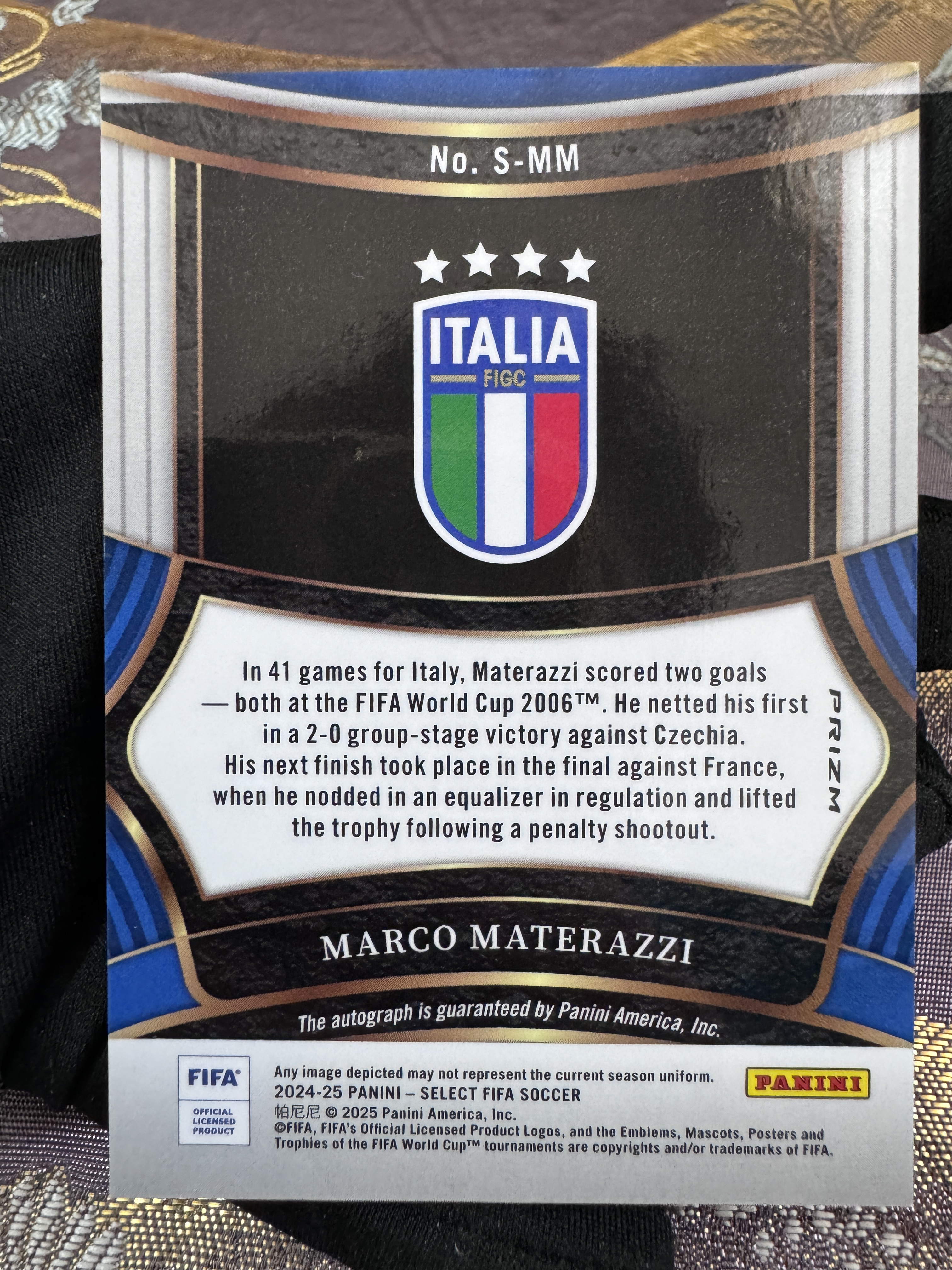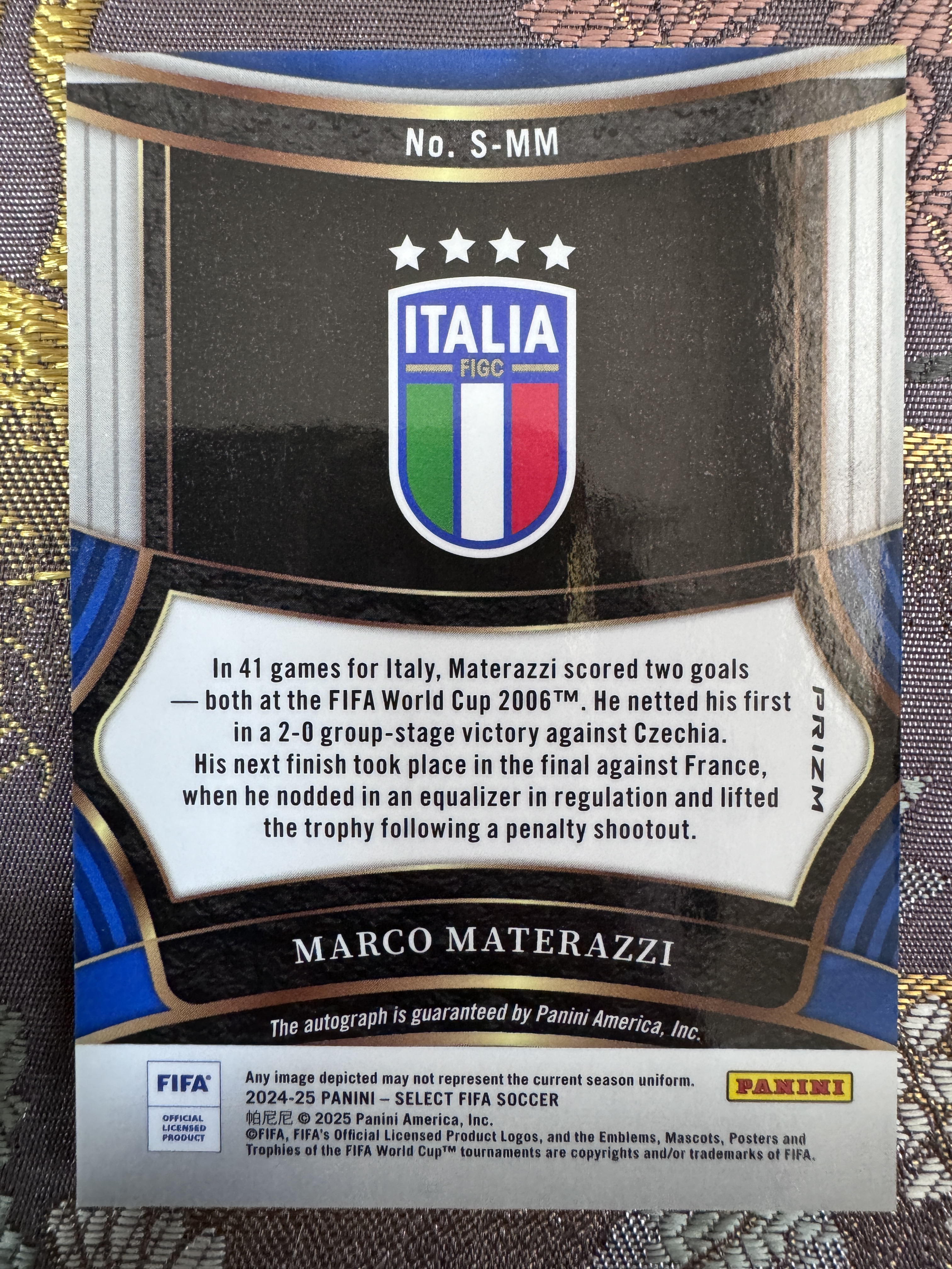 2025 Panini Select MARCO MATERAZZI 【澈梦北霄】世界杯 select 意大利 国际米兰 世界杯冠军 超级巨星 马特拉齐 传奇 大师 厚卡 银折签 签字 稀有 实卡精美