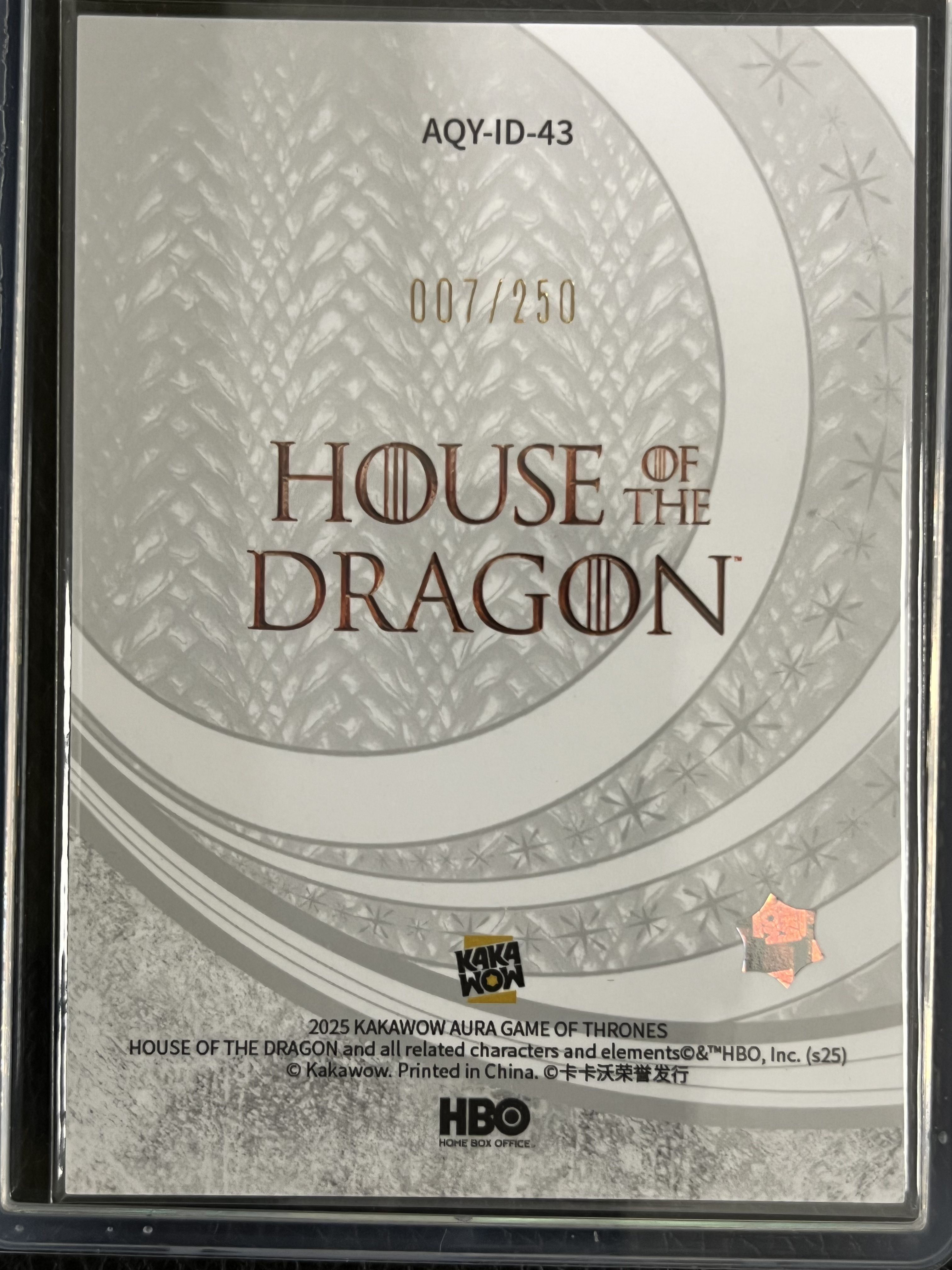 卡卡沃 2025 KAKAWOW AURA 权力的游戏官方收藏卡 龙折 龙S(18A)7/250编 卡号43 伊耿·坦格利安二世 Aegon II Targaryen