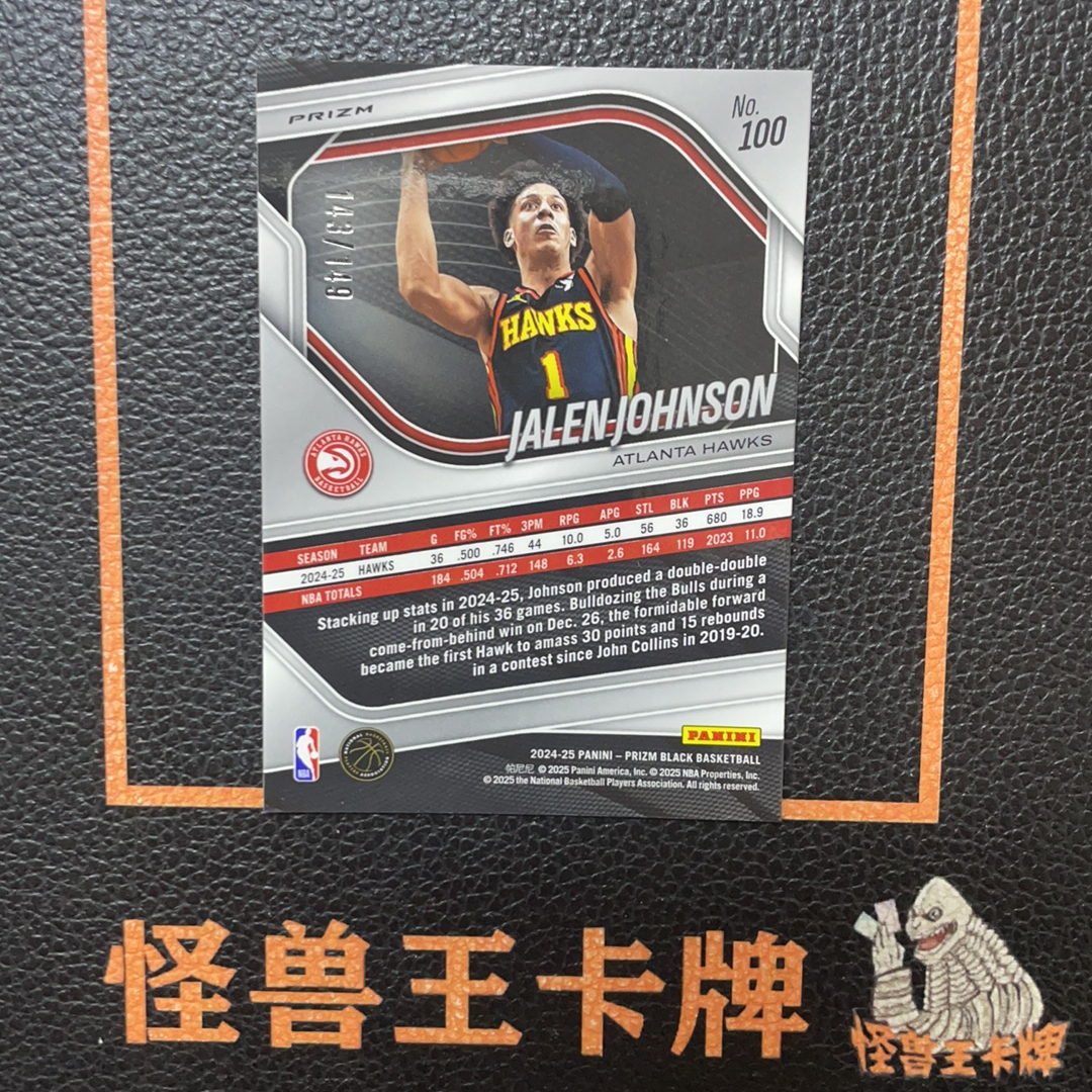 (怪兽拍卖) GSW-D64 2024-25 Panini Prizm Jalen Johnson prizm black 杰伦 约翰逊 紫碎冰 149编 老鹰 新鹰王