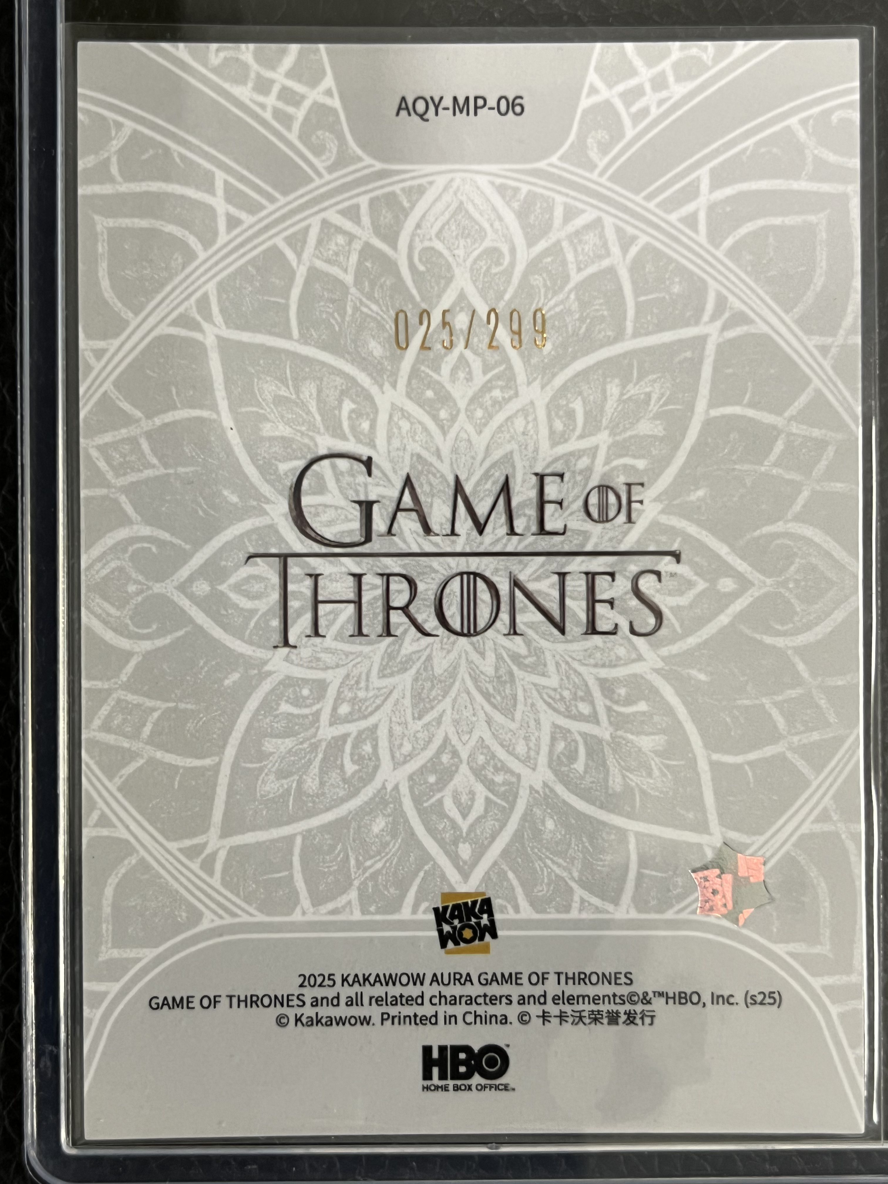 卡卡沃 2025 KAKAWOW AURA 权力的游戏官方收藏卡 迷盘幻象卡 龙S(18A)25/299编 卡号6 珊莎·史塔克 Sansa Stark