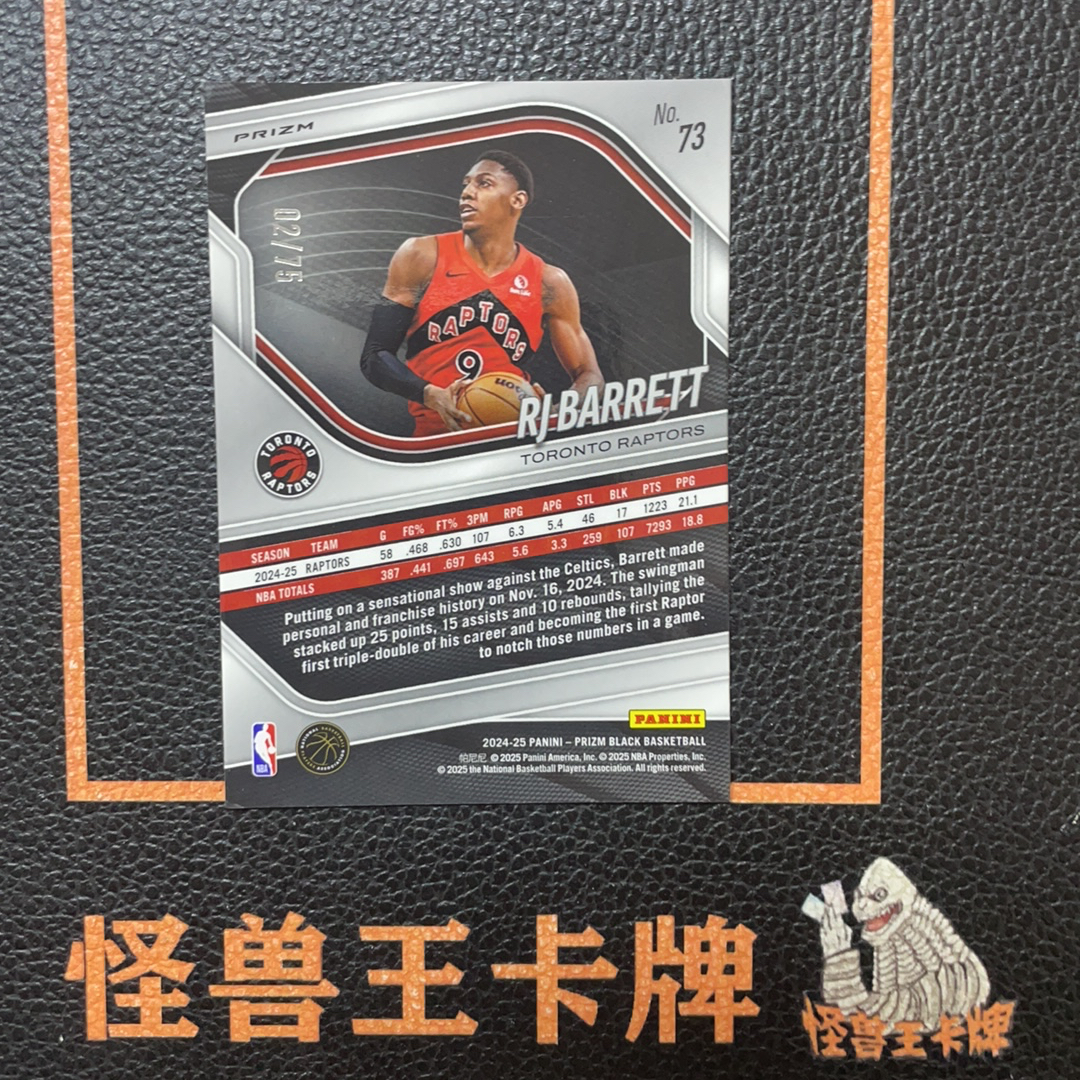 (怪兽拍卖) GSW-D64 2024-25 Panini Prizm Black R.J. Barrett 猛龙 RJ巴特勒 75编 红格子折 折射