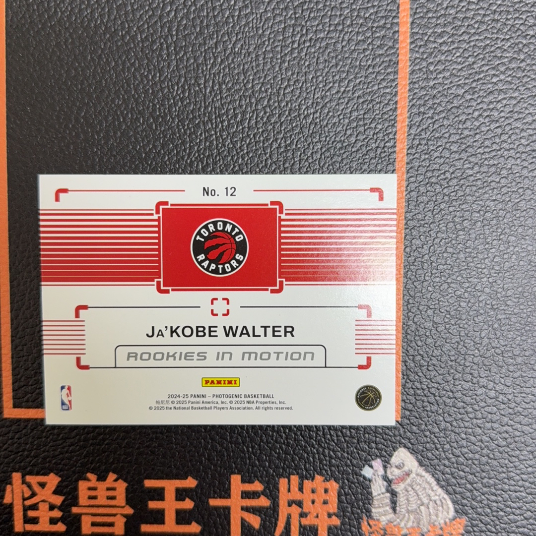 (怪兽拍卖) GSW-A67 2024-25 Panini PhotoGenic Ja'Kobe Walter RC 上镜 贾科比 沃尔特 猛龙 新秀 75编 碎冰折 折射 图345微瑕