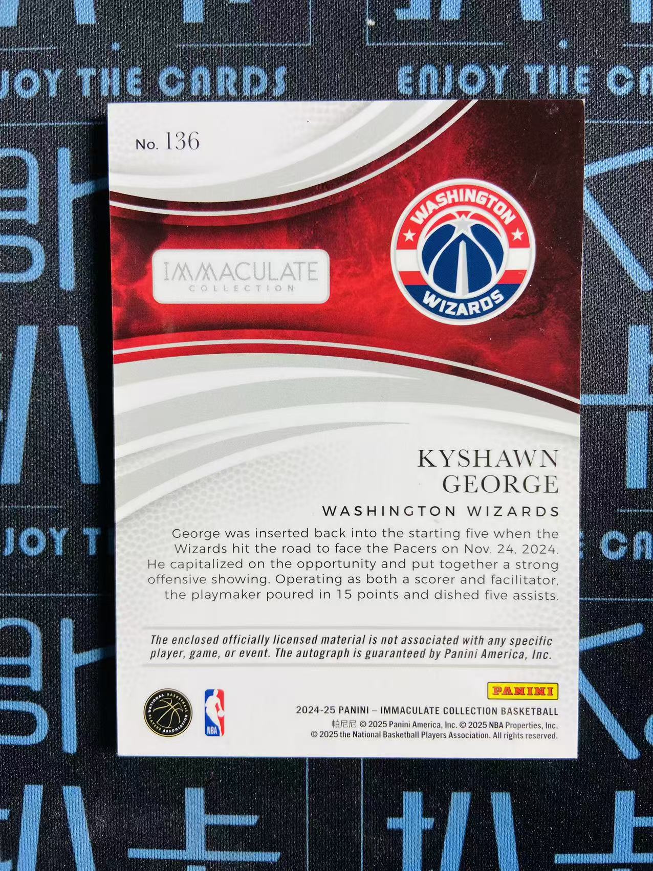 【扒卡拍卖】【拍前请看描述】2024-25 Panini Immaculate Kyshawn George imm 凯肖恩 乔治 奇才 新秀RC 签字 卡签 2/3编 低编 RTA RPA 球衣物料 tag 瑕疵如图 bm1123BK30