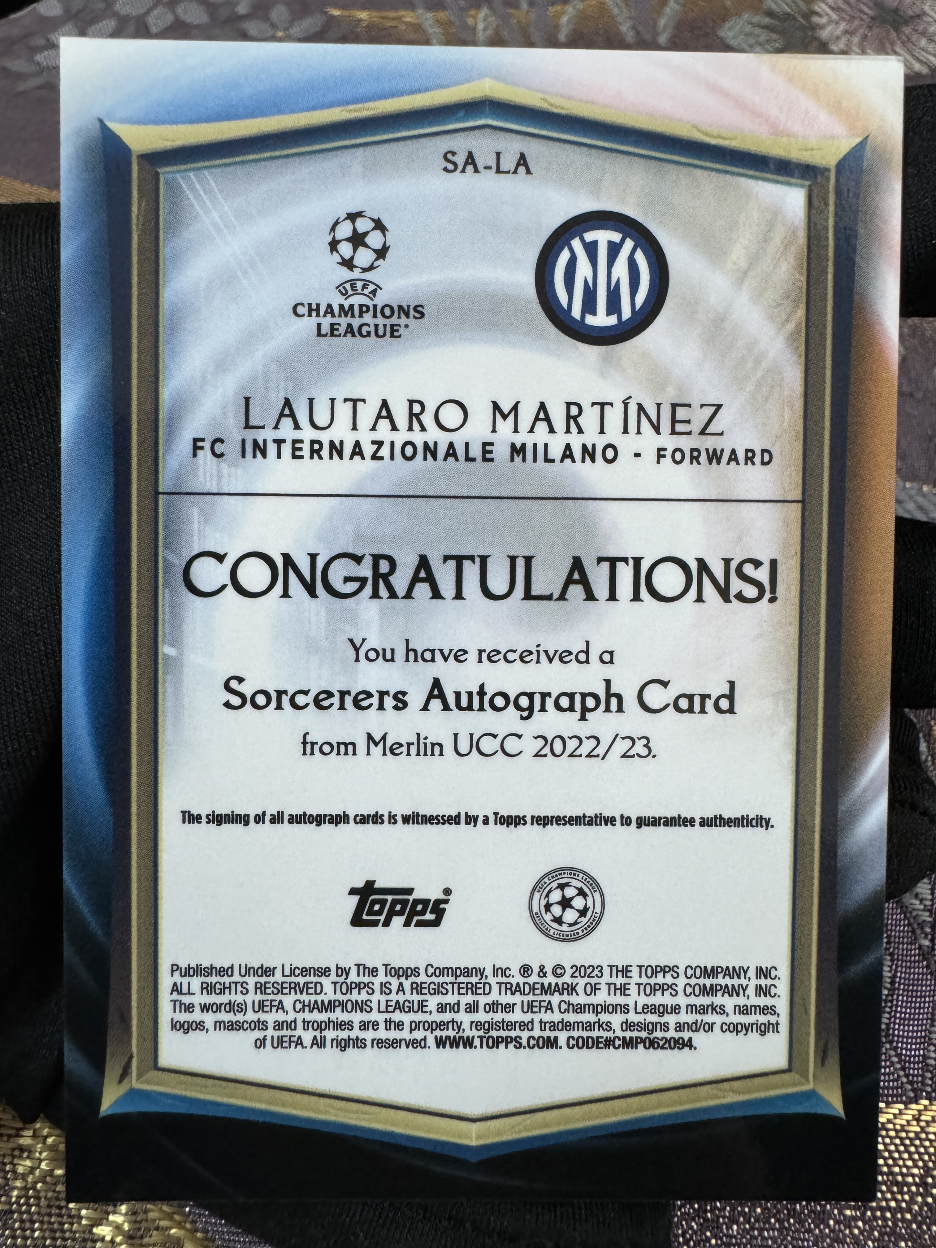 2023 Topps Merlin chrome Lautaro Martínez 欧冠 梅林 国际米兰 阿根廷 超级巨星 劳塔罗 马丁内斯 投资大热 大比例 巫师特卡签 签字 完美墨迹 实卡精美