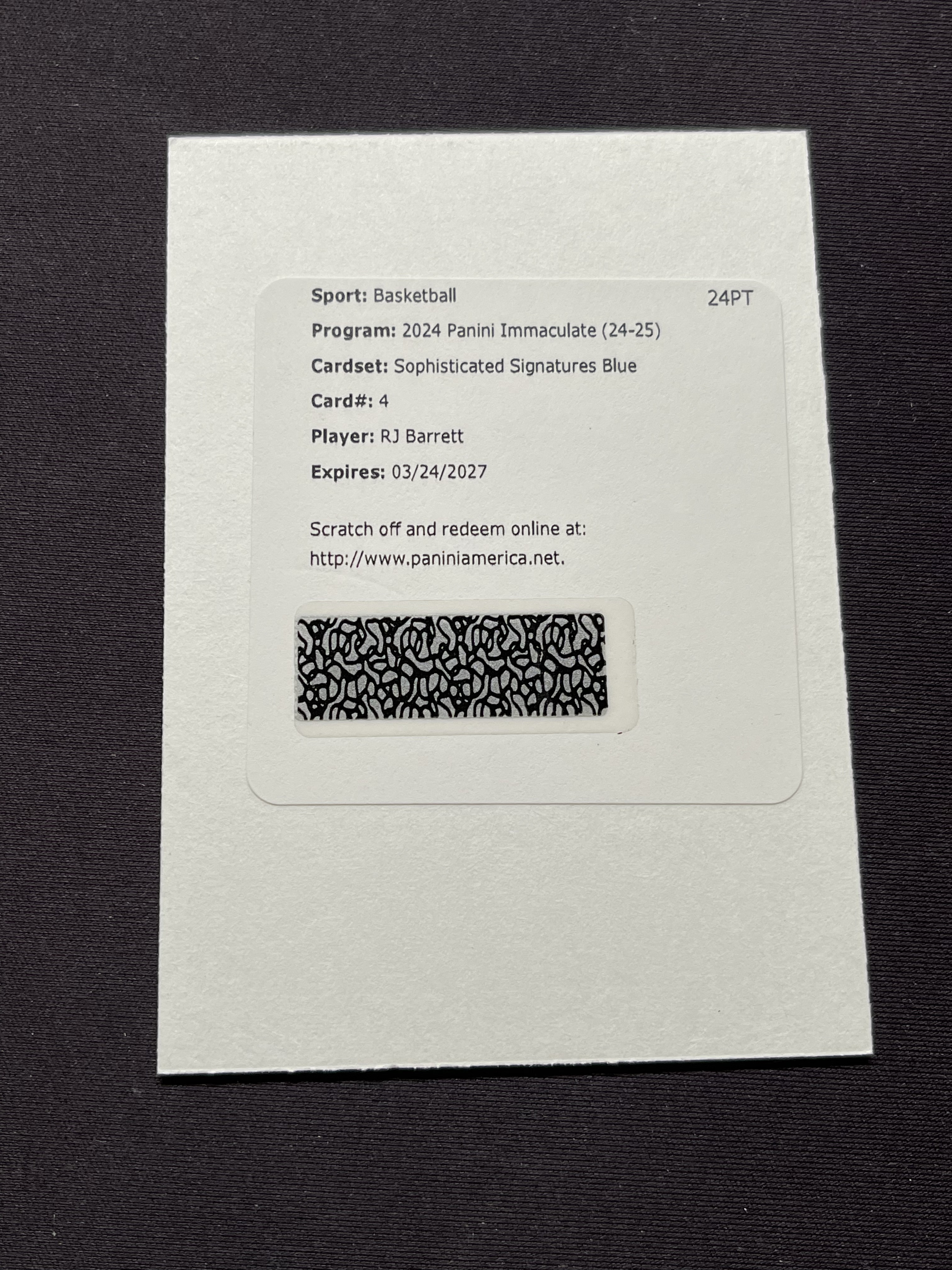 2024-25 Panini Immaculate R.J. Barrett 猛龙 RJ巴雷特 Sophisticated 签字卡签 蓝版 15编 交换板 只发货 不累计「老夫子」XMD