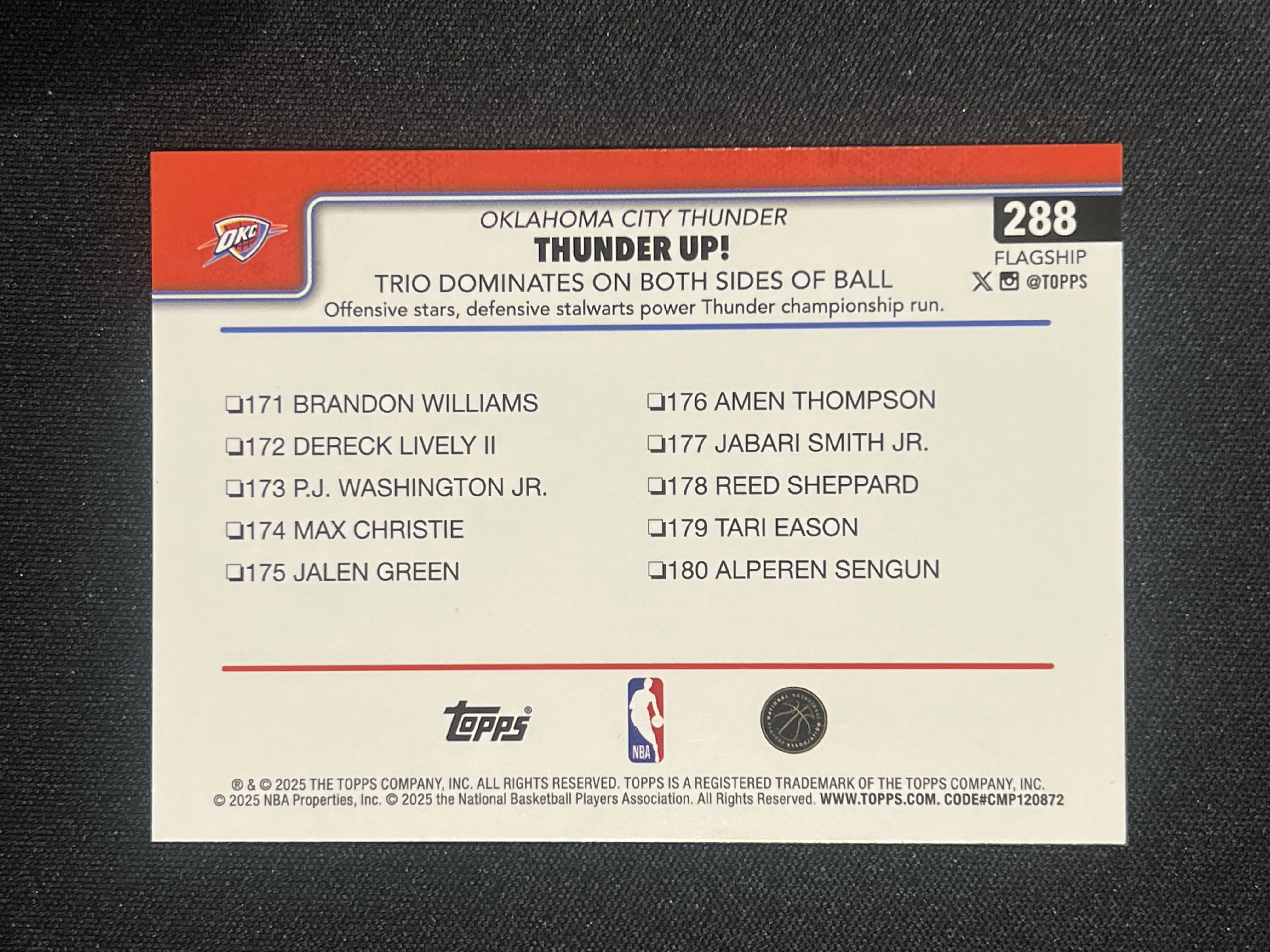 【卡卡星拍卖】2025-26 Topps Flagship 谢伊 吉尔杰斯 亚历山大 SGA 切特 霍姆格伦 阿列克斯 卡鲁索 雷霆 Base 组合 折射 银折 卡品如图 唐叁
