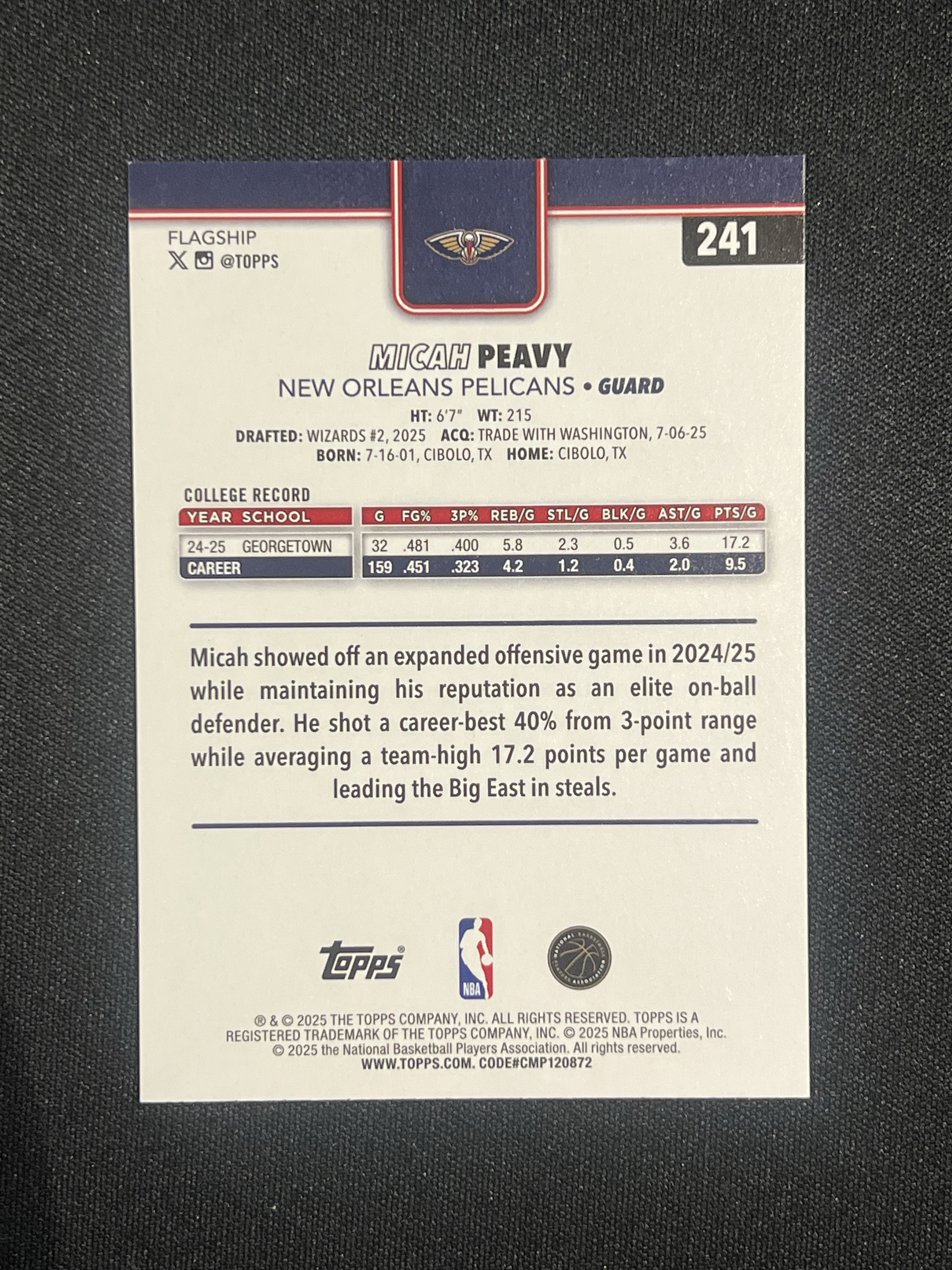 【卡卡星拍卖】2025-26 Topps Flagship Micah Peavy RC Nirvana Project 迈卡 皮维 鹈鹕 新秀 铜平行 2025编 未来可期 卡品如图 唐叁