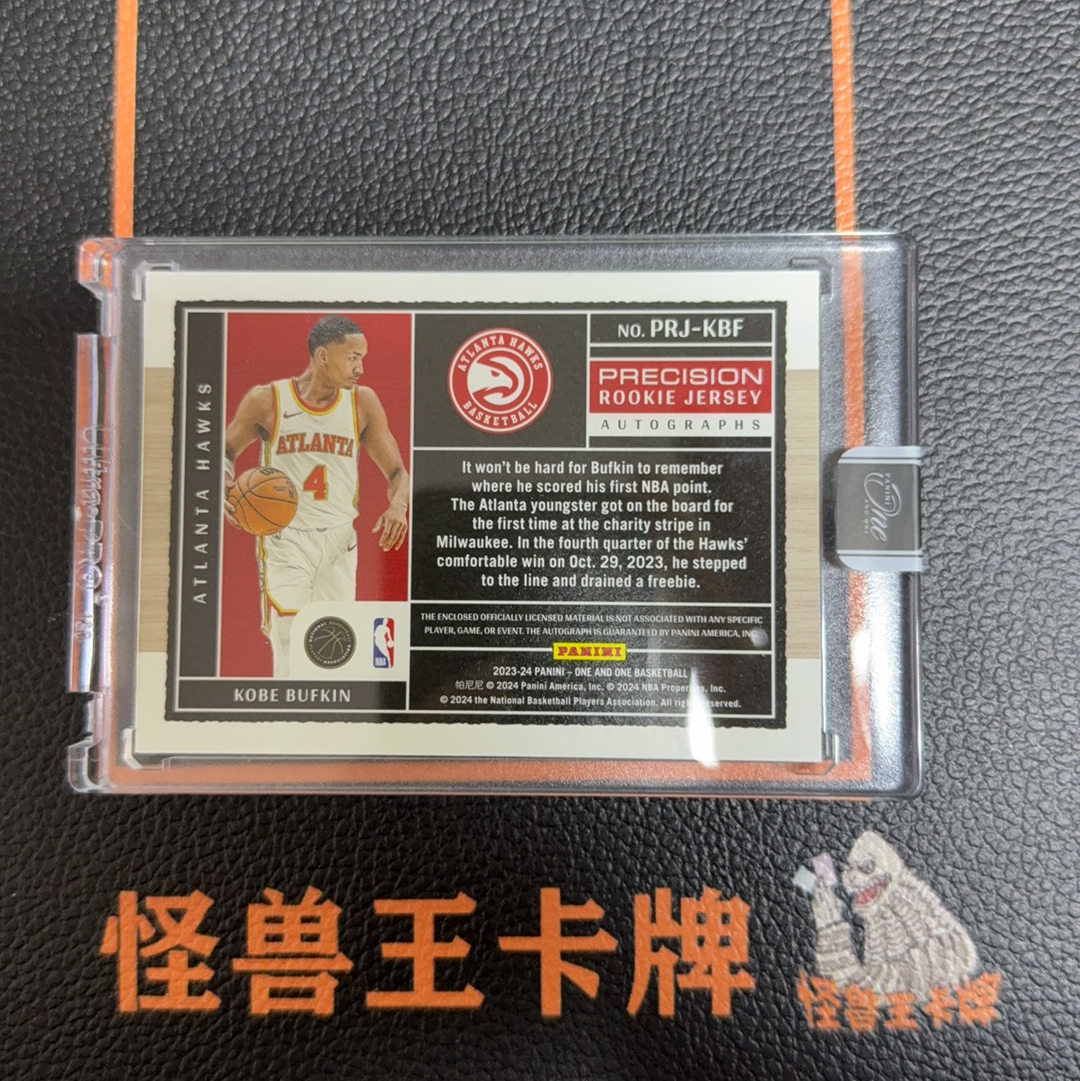 (怪兽拍卖) GSW-E05 2023-24 Panini One and One Kobe Bufkin RC 老鹰 新秀 科比 巴夫金 签字 卡签 物料签 03/99编 原封砖