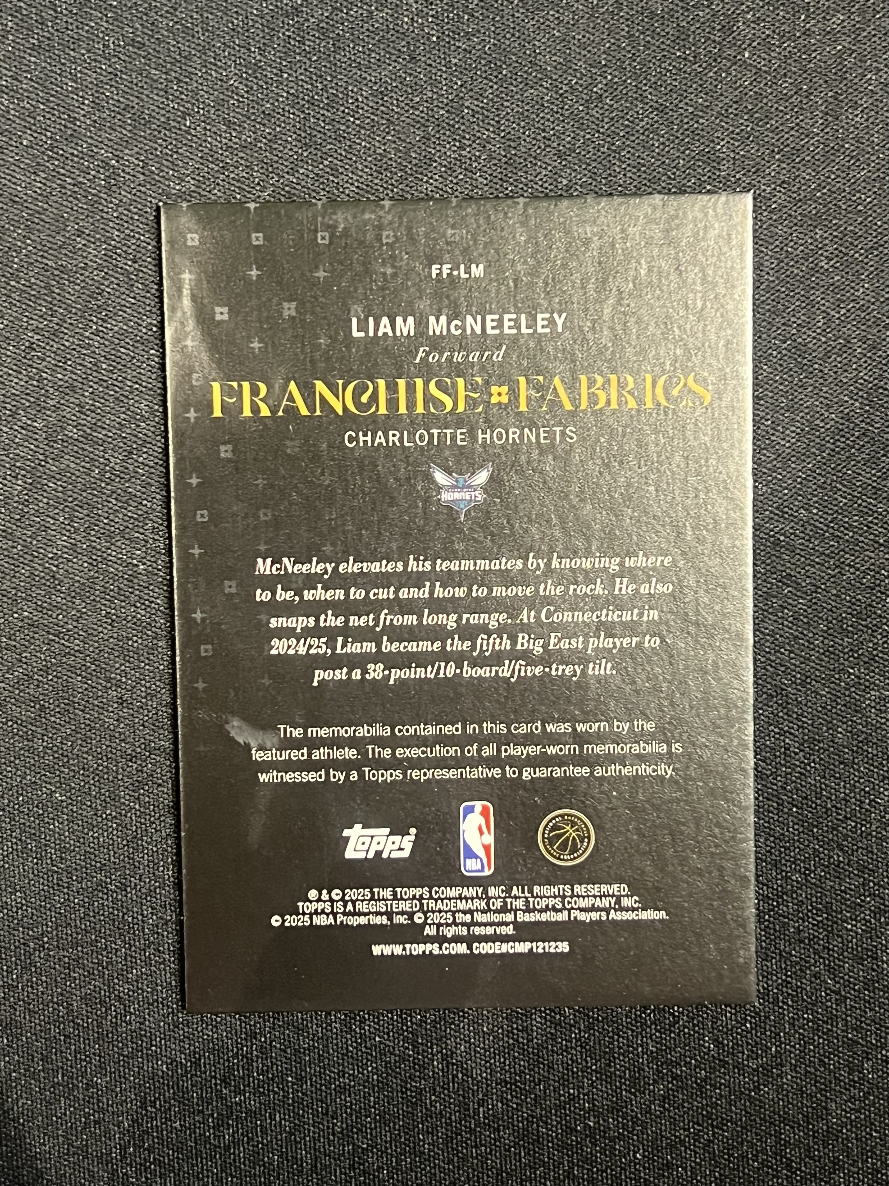 【卡卡星拍卖】2025 Topps Flagship Liam McNeeley RC 麦克尼利 新秀 小窗双色物料 pacth 卡品如图 唐叁