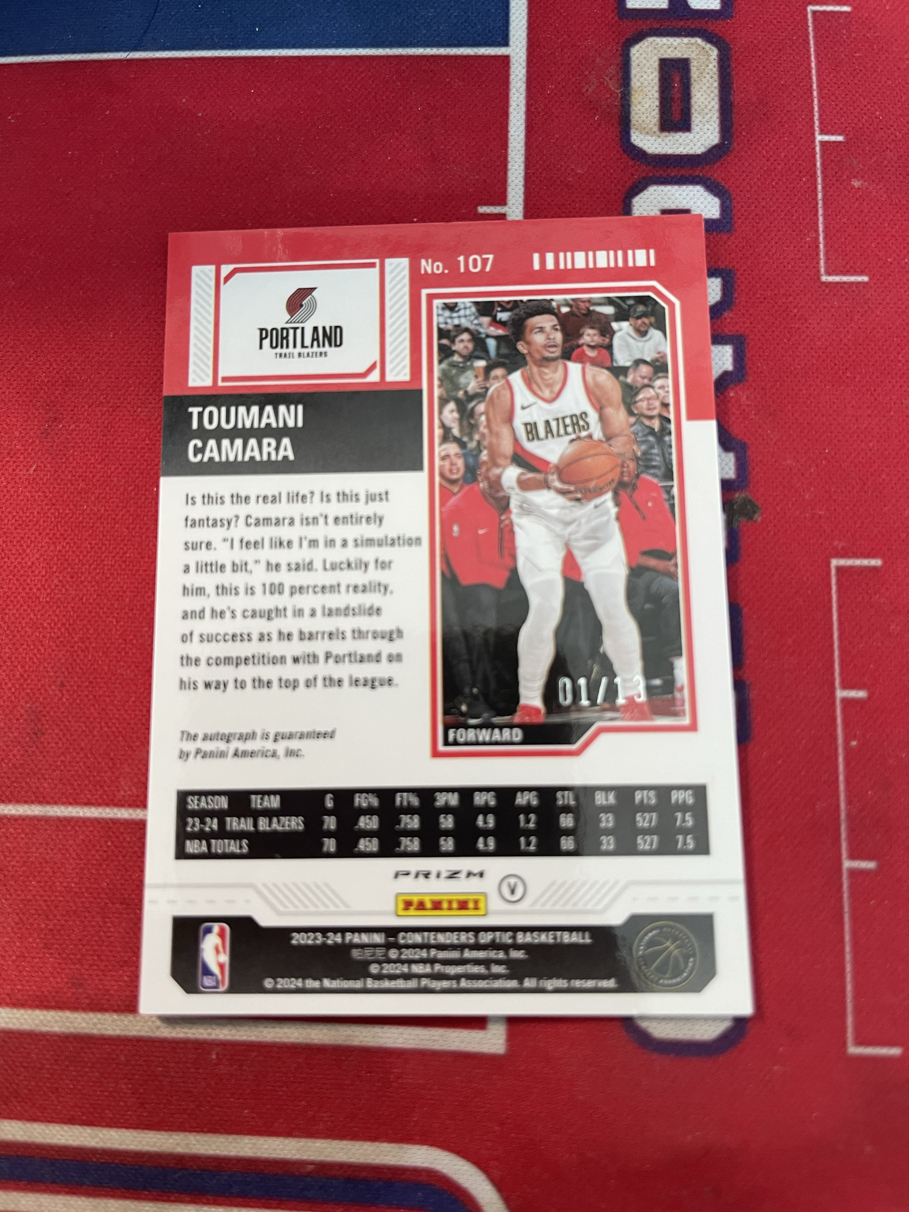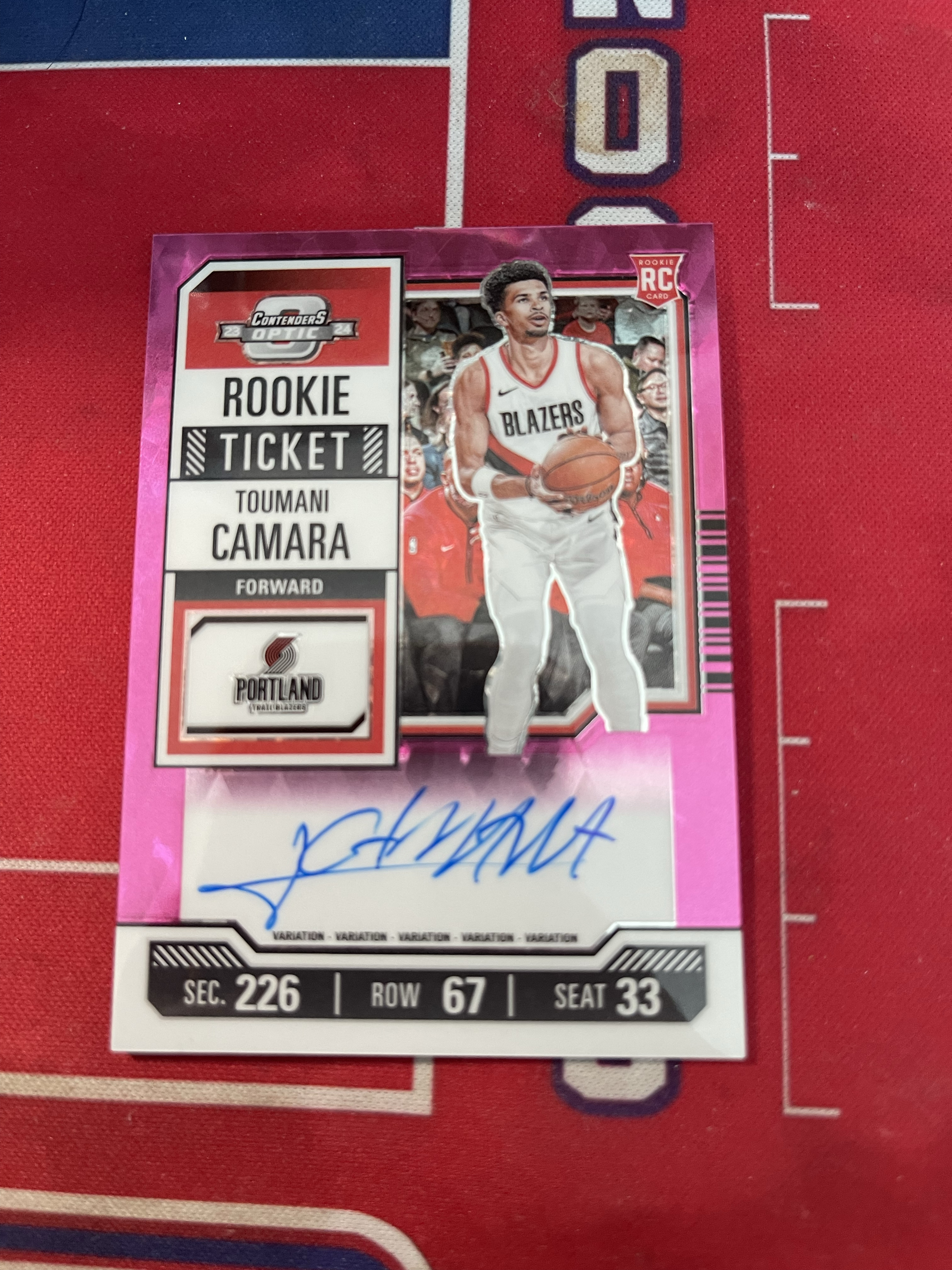 2023-24 Panini Contenders Optic Toumani Camara RC 开拓者 图马尼 卡马拉 新秀 13编 粉宝石折 签字 卡签 变化版 杨翰森队友 卡品如图 收藏必备
