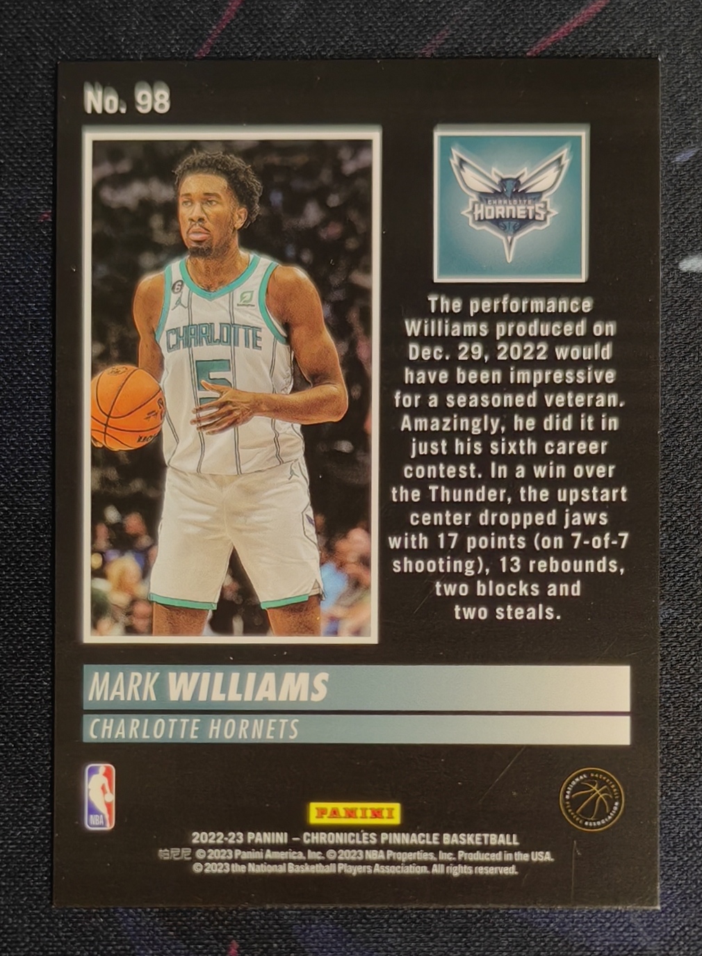 2022-23 Panini Pinnacle Mark Williams RC 黄蜂 太阳 新秀RC 马克威廉姆斯 巅峰8编 黑风车折射 潜力新星(爱妈拍卖)可累计 免费代拍 瑕疵看图