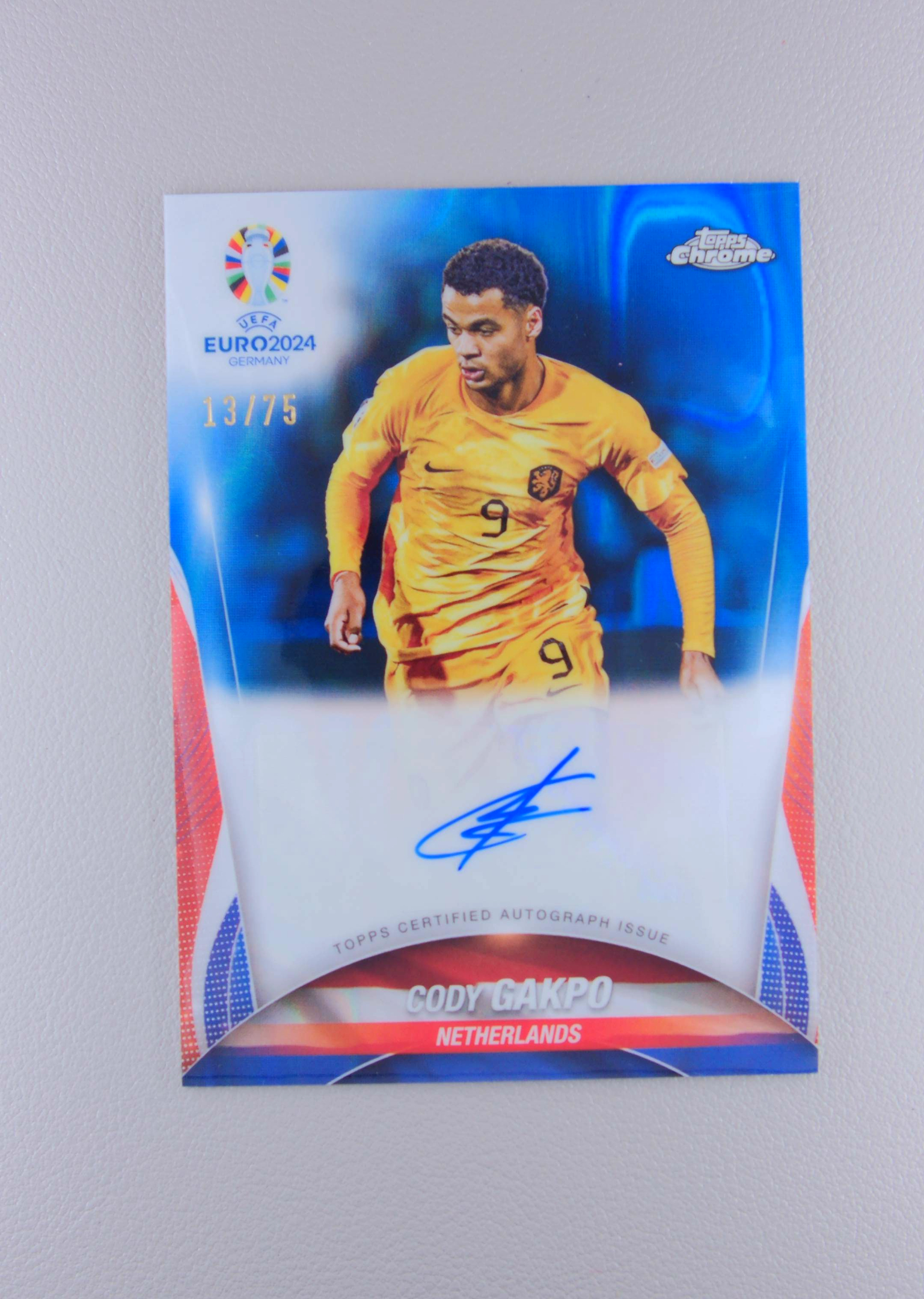 2024 Topps Chrome UEFA Euro Cody Gakpo 科迪 加科波 签字 蓝熔岩折 75编 荷兰 欧洲杯 正TC 瑕疵 战神无双拍卡 (#xuan)