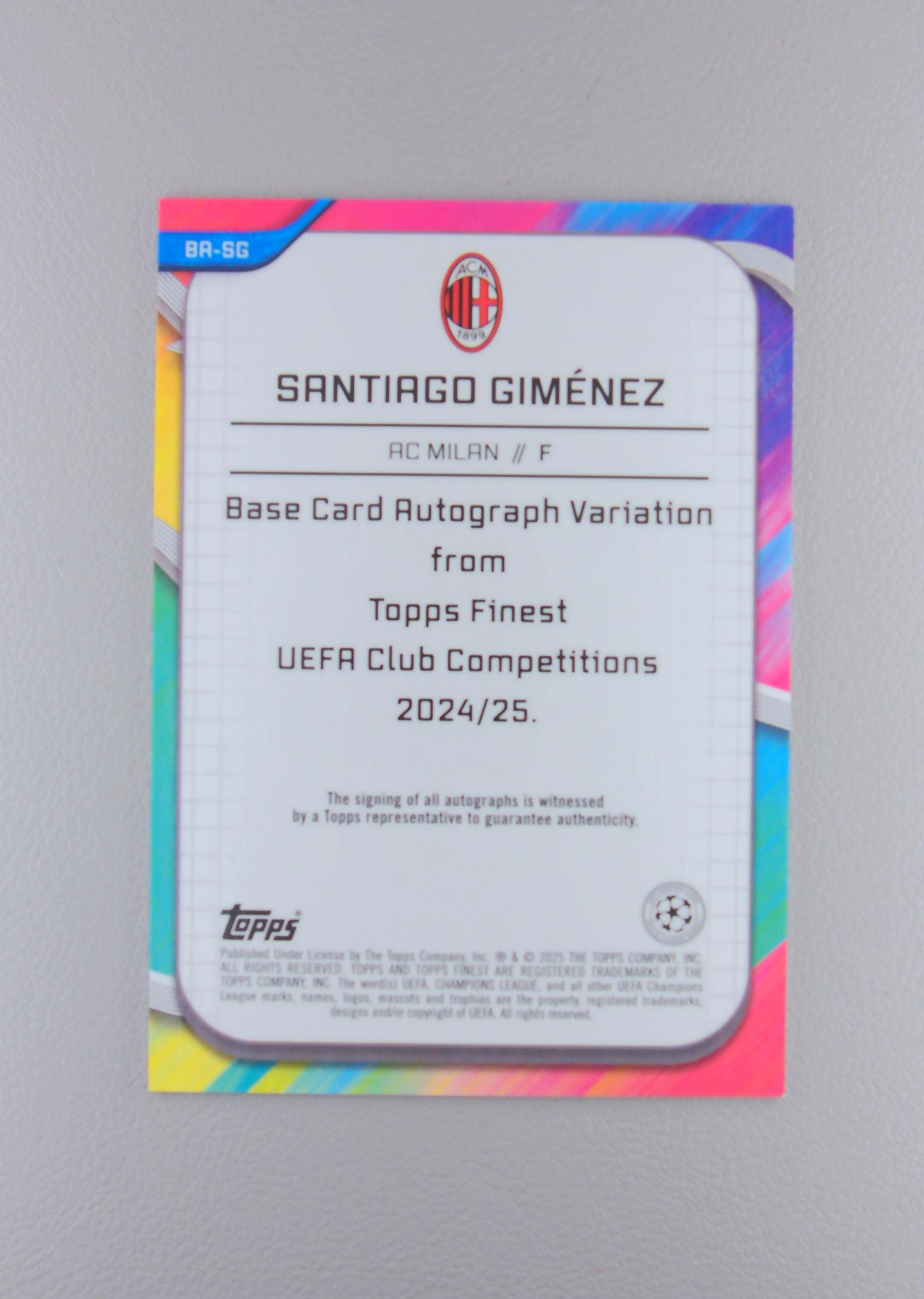 2025 Topps Finest Santiago Gimenez 圣地亚哥 希门尼斯 签字 欧冠 银折 AC米兰 战神无双拍卡 (#xuan)