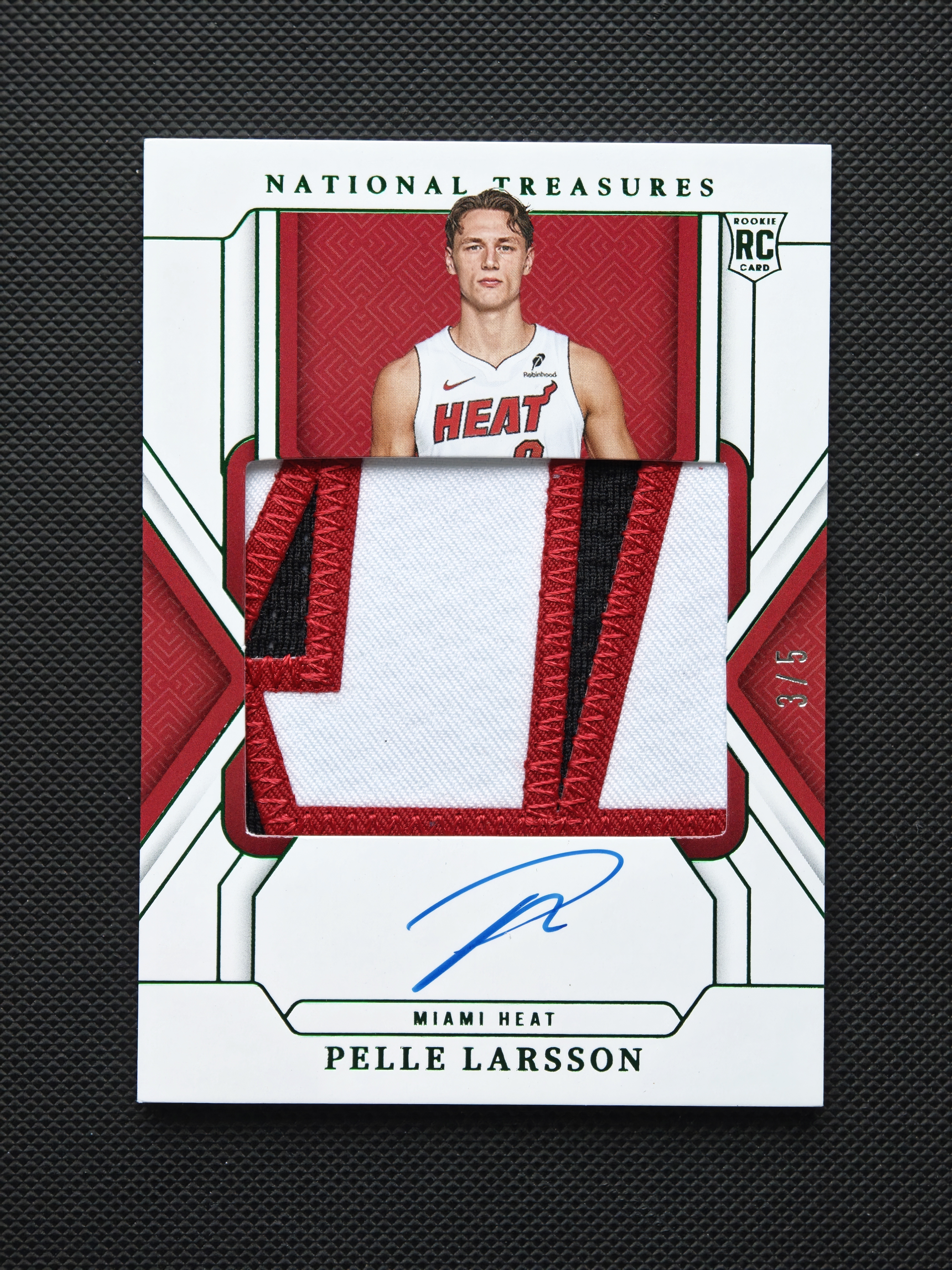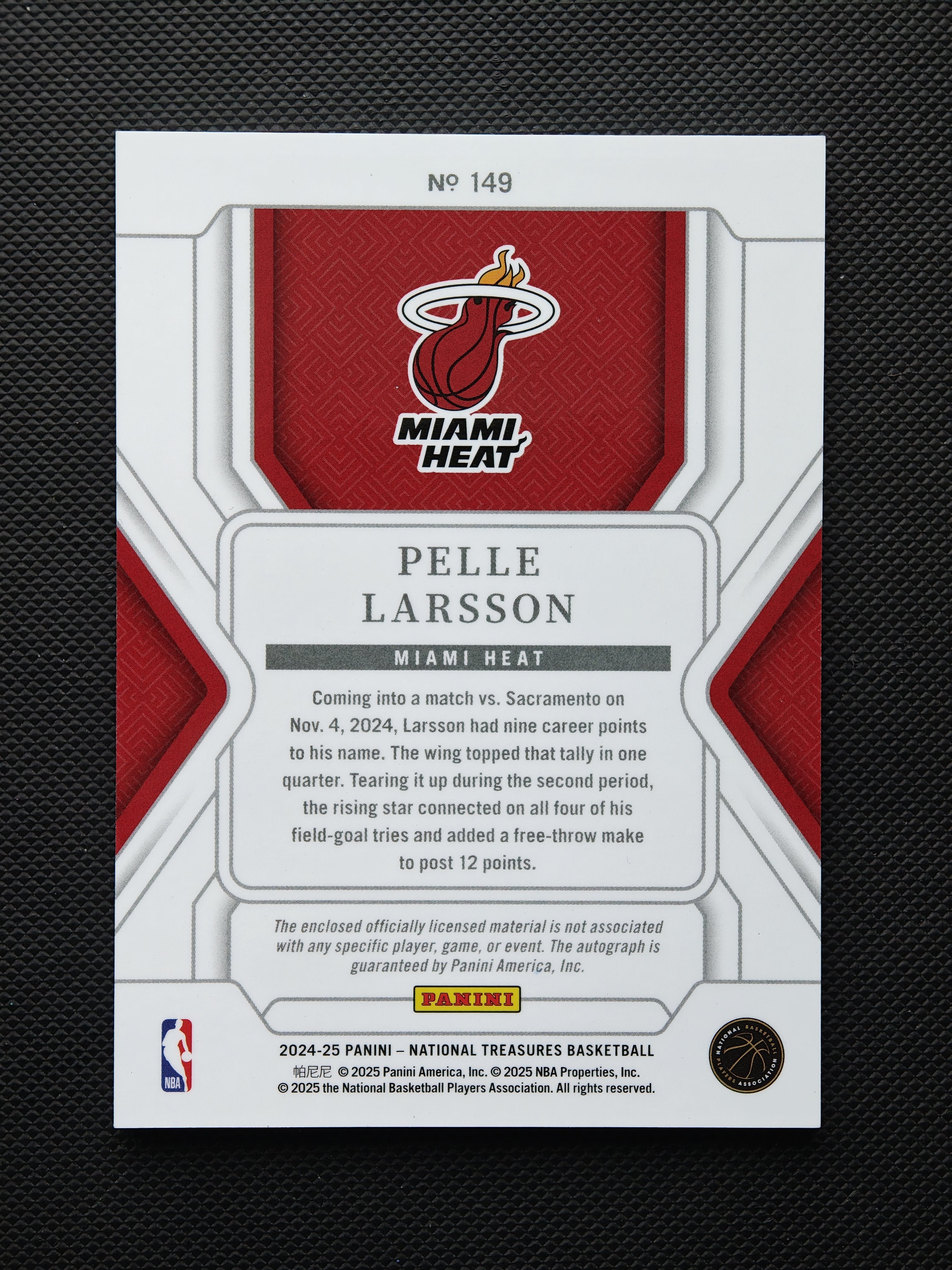 2024-25 Panini National Treasures Pelle Larsson RC 热火队首发新秀 佩勒 佩莱 拉尔森 拉尔松 拉松 5编国宝正RPA 绿宝石 卡签字母切割 卡角如图