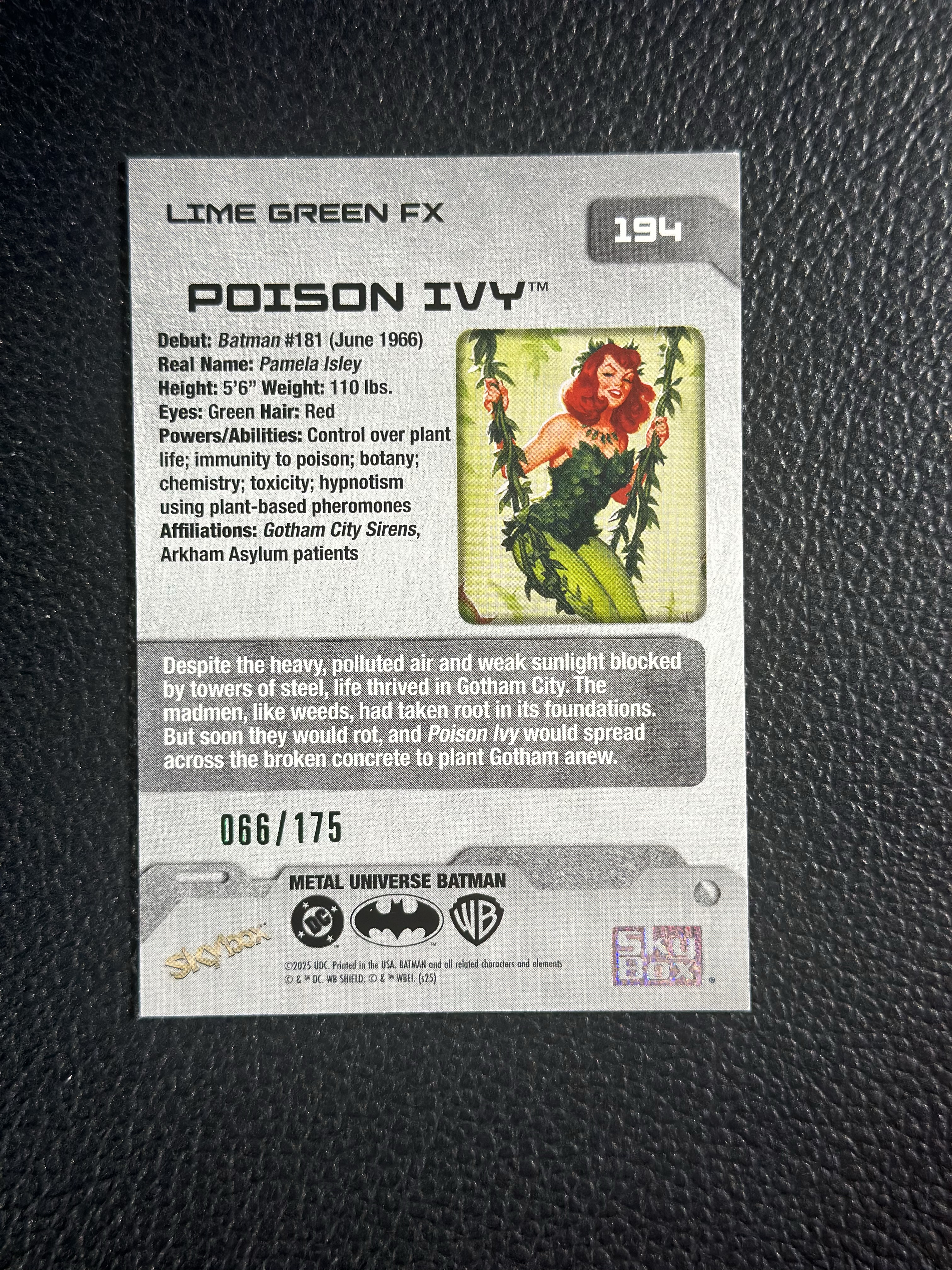 2025 Upper Deck Skybox Metal Batman 元年 DC蝙蝠侠 Kacey拍卖 Poison Ivy 毒藤女 175编绿平行color match 收藏必备多哥卡品如图