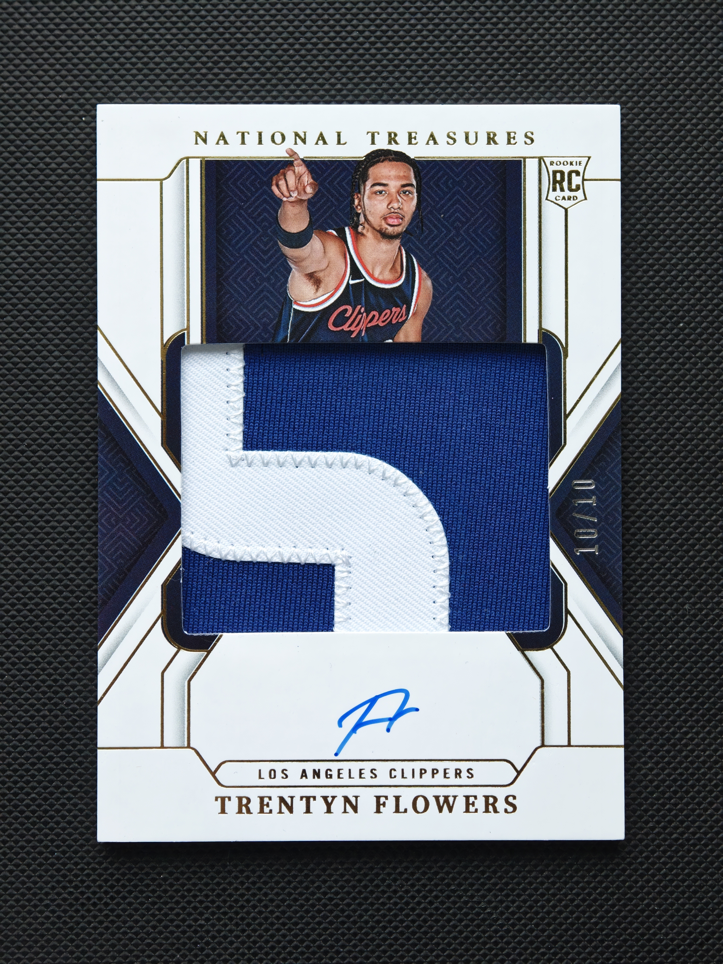 2024-25 Panini National Treasures Trentyn Flowers RC 快船队新秀 特伦廷 弗劳尔斯 特伦廷弗劳尔斯 花哥 10编国宝正RPA 尾编 卡签 卡品如图