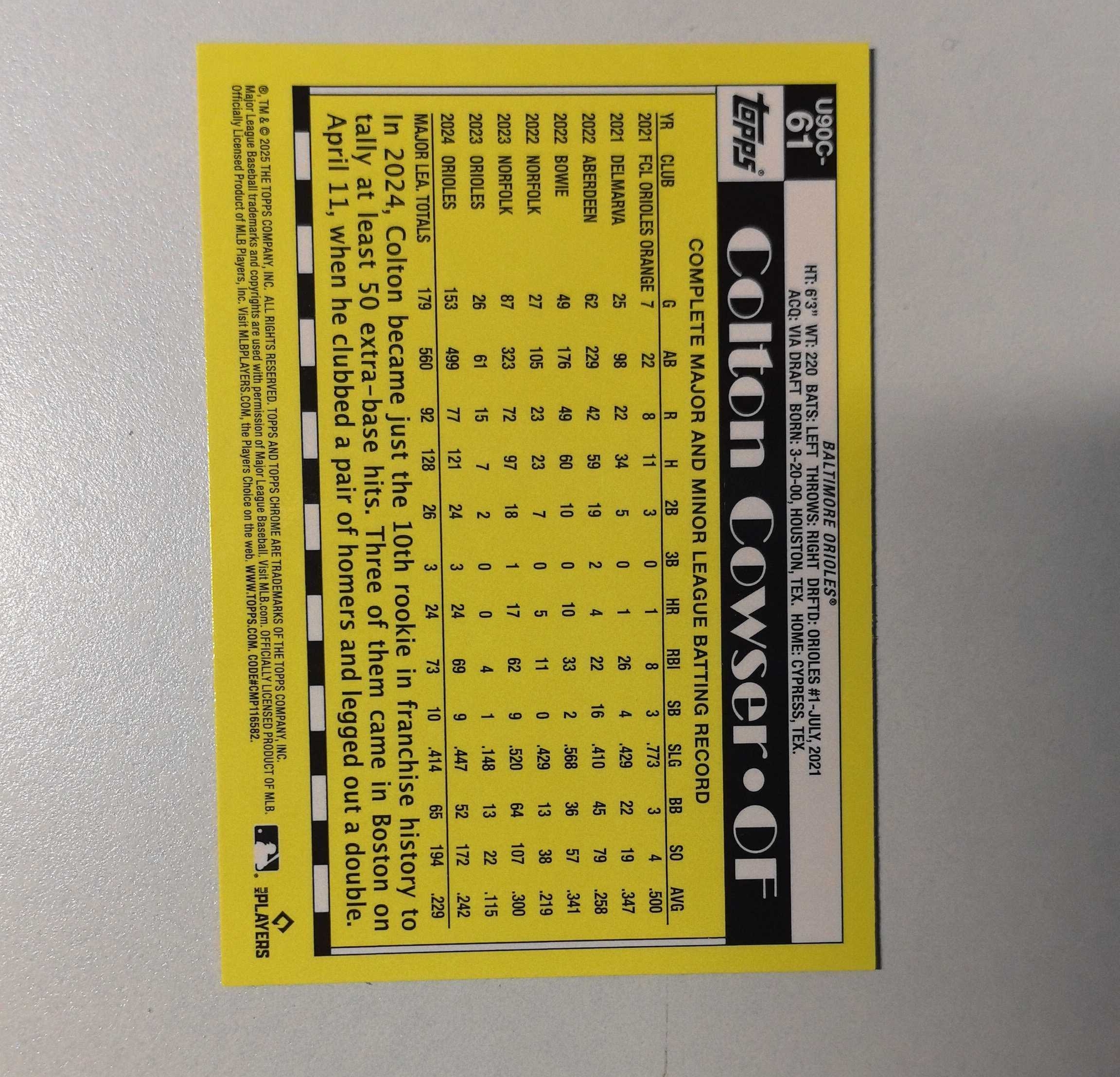 2025 Topps 【锡安代卖】 累计照常 棒球mlb series update 35周年复古mojo折150编 巴尔的摩金莺热门巨星 colton Cowser 卡品如图 三角肉