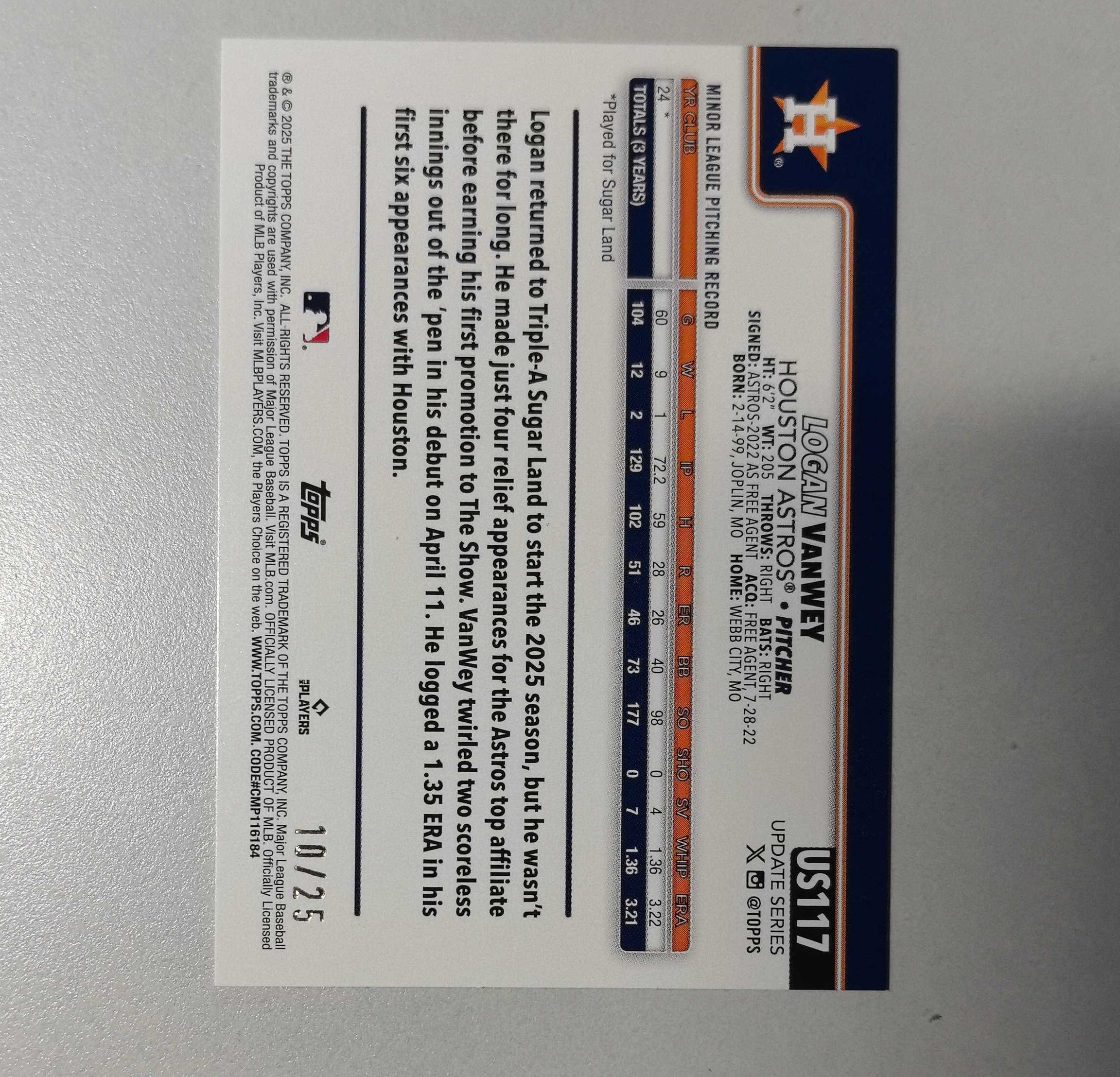 2025 Topps 【锡安代卖】 累计照常 棒球mlb series update 橙平行25编 休斯顿太空人热门新秀 Logan Vanwey 卡品如图 三角肉
