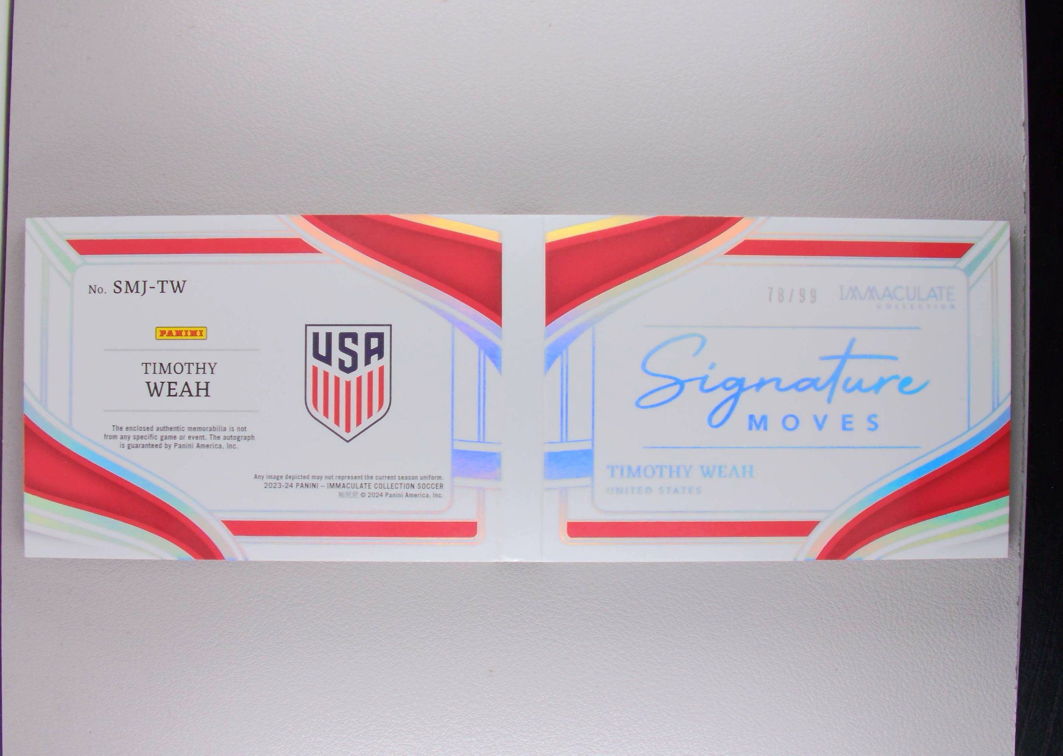 2023-24 Panini Immaculate Timothy Weah 马赛 蒂莫西 维阿 美国 大窗 球衣 物料 签字 卡签 小书 78/99编 IMM 瑕疵 战神无双拍卡 (#xuan)