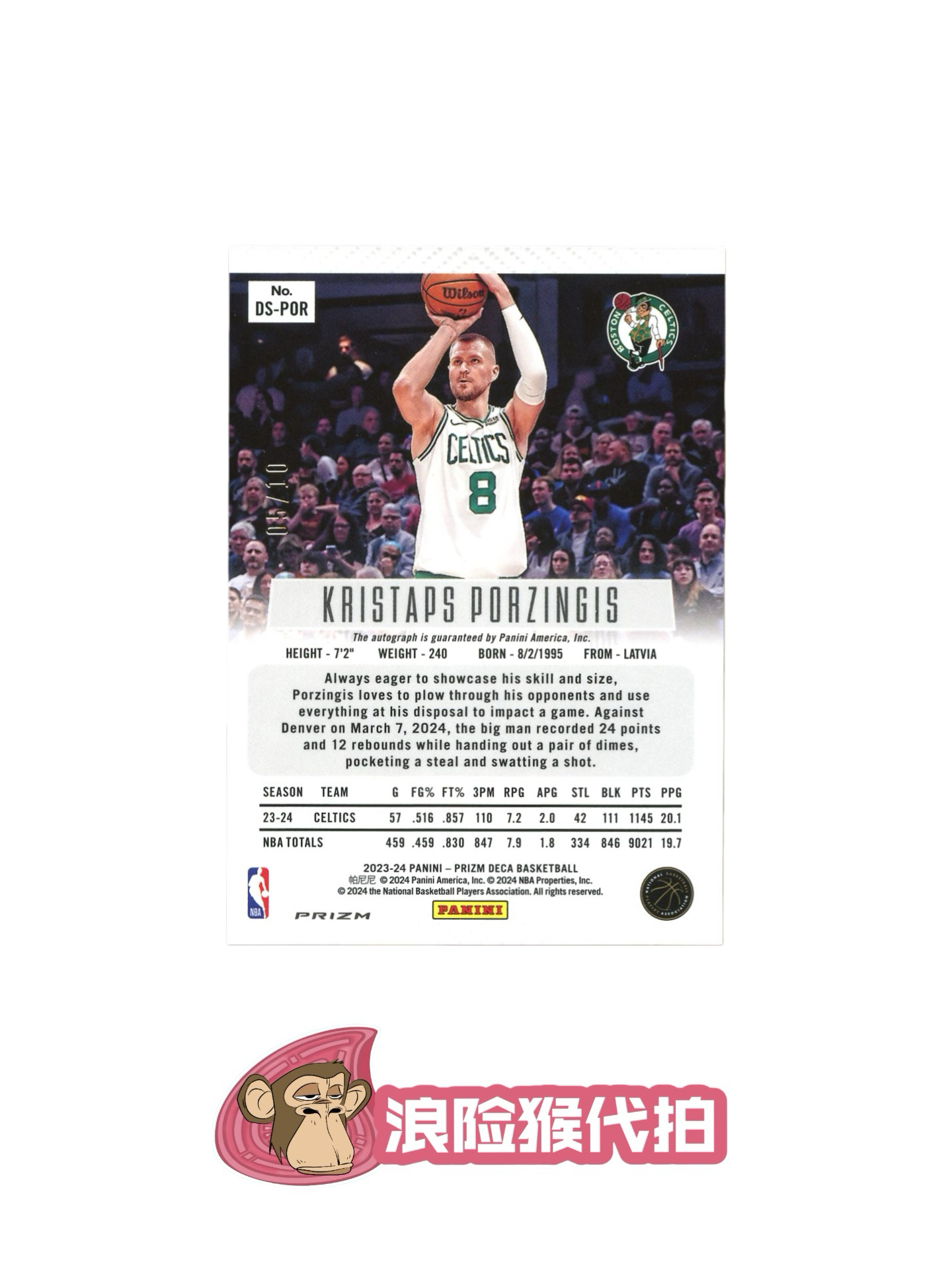 【浪险猴🐒代拍】2023-24 Panini Prizm Kristaps Porzingis PZ 十周年元年复刻 克里斯塔普斯 波尔津吉斯 凯尔特人 10编 签字 金折 折射 卡品如图 黎明