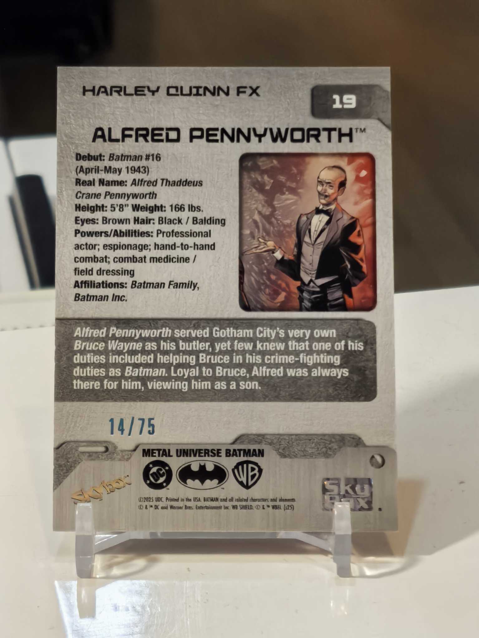 2025 Upper Deck Batman Alfred Pennyworth 【KS拍卖】Metal 蝙蝠侠 男仆阿尔弗雷德 /75编哈莉奎因FX平行,非常漂亮,DC元年升值潜力巨大