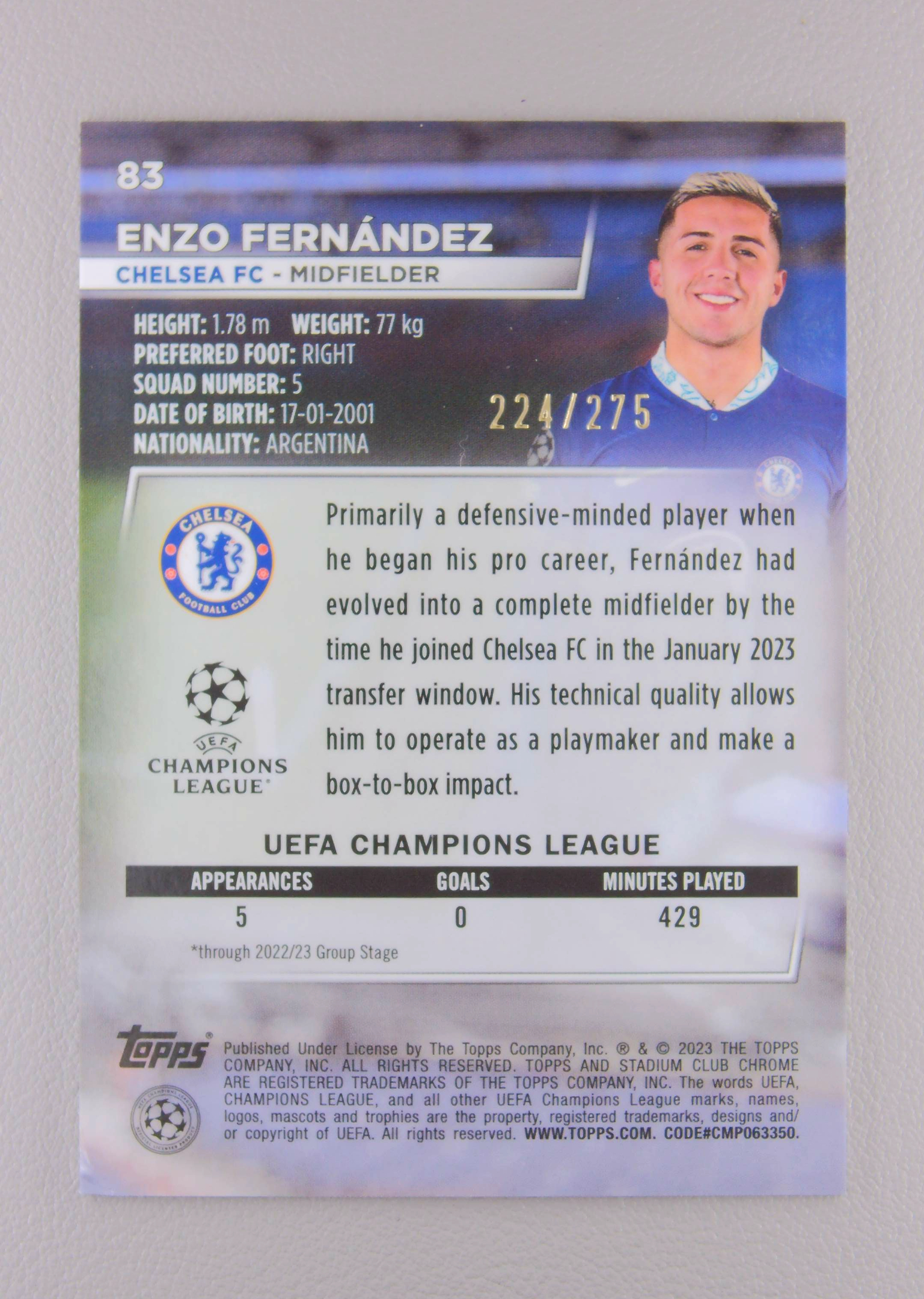 2023 Topps stadium club Enzo Fernandez RC 恩佐 费尔南德斯 绿折 新秀 欧冠 切尔西 275编 竞技场 瑕疵 战神无双拍卡 (奥利)