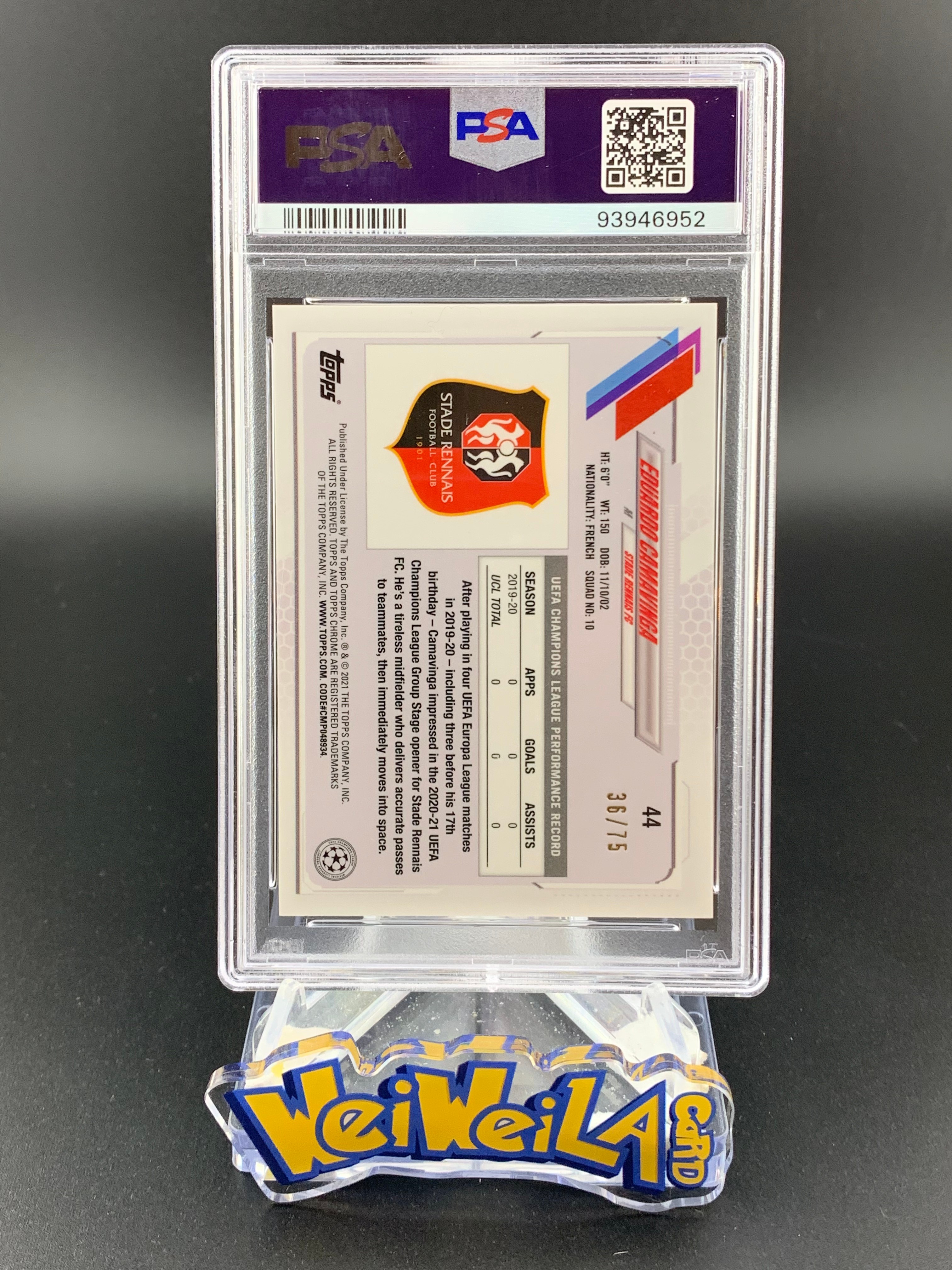 【微微辣代卖】V1-18伟404 2020-21 Topps Chrome Eduardo Camavinga RC 欧冠TC 雷恩 卡马文加 新秀 75编 蓝折 折射 PSA9