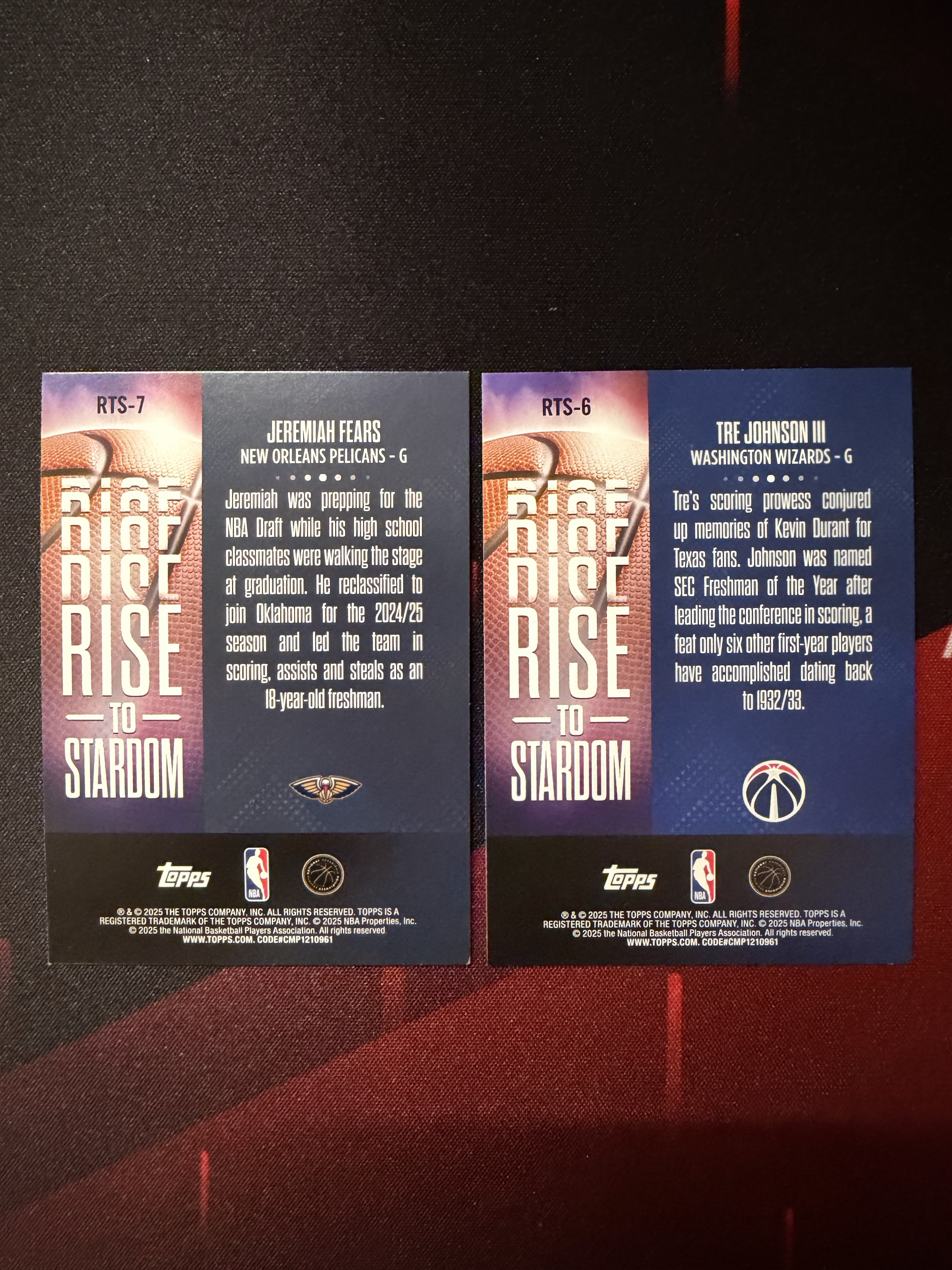 2025 Topps Flagship Basketball Tre Johnson III RC Topps篮球旗舰 特雷 约翰逊 杰里米亚 费尔斯两大好人新秀 特卡 银折 2张