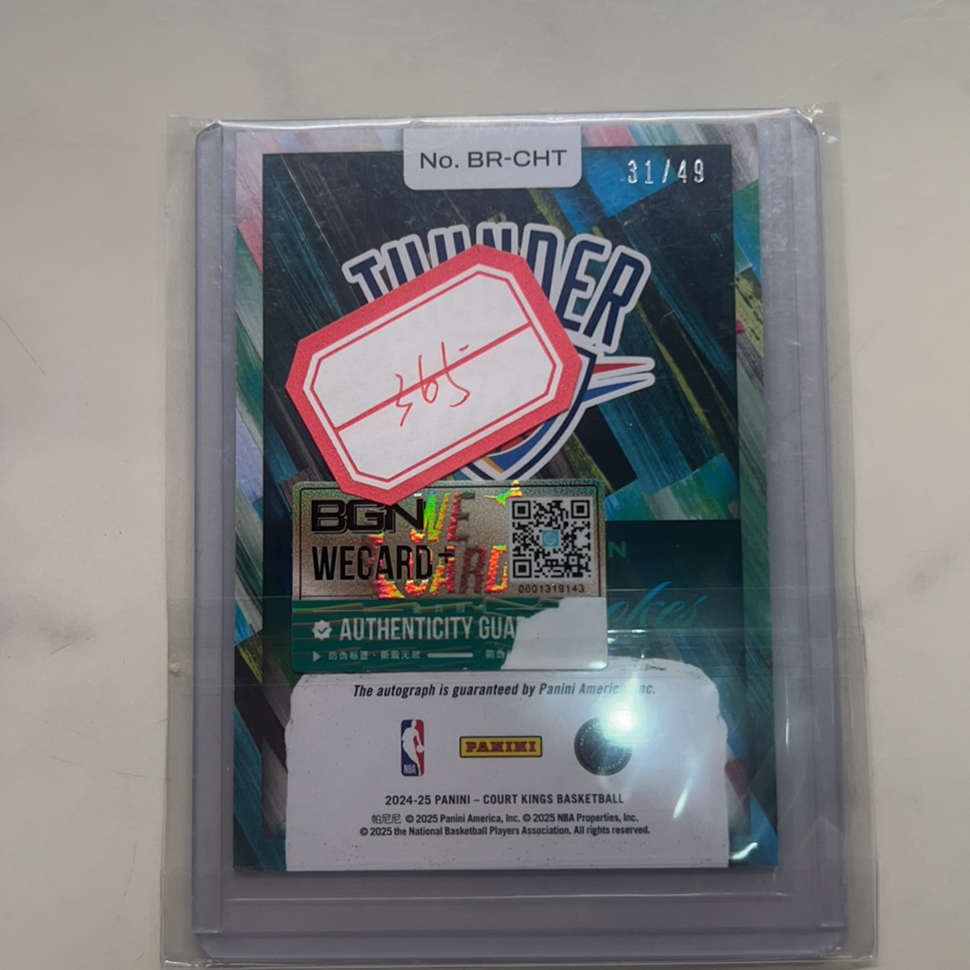 2024-25 Panini Court Kings Chet Holmgren 切特 霍姆格伦 签字 贴签 49编 总冠军成员 雷霆 亚历山大队友 卡品如图