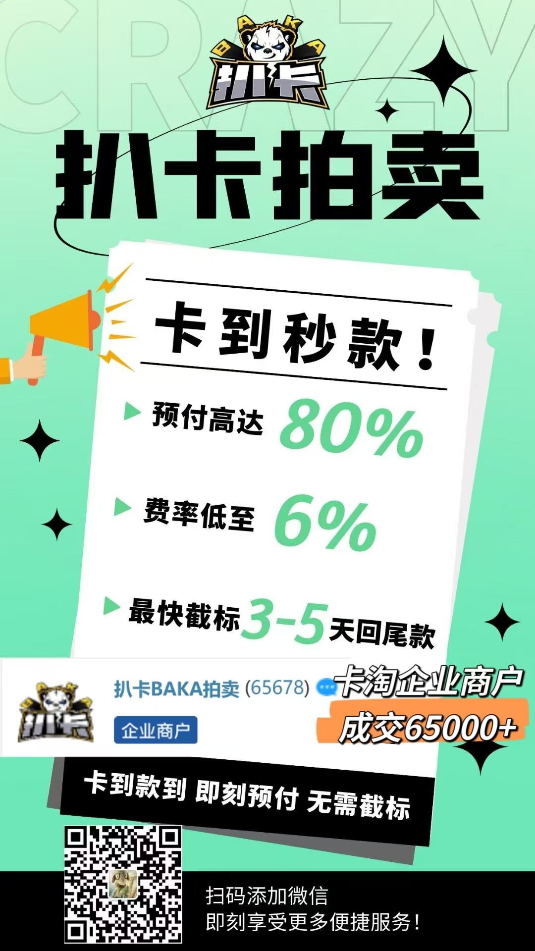 2.付款:竞拍成功后请于3天内付款,超时不付款系统自动关单封号。买卡皆为自愿出价,请慎重考虑后看准再出价,我们不接受任何理由的取消交易或发布点赔偿。