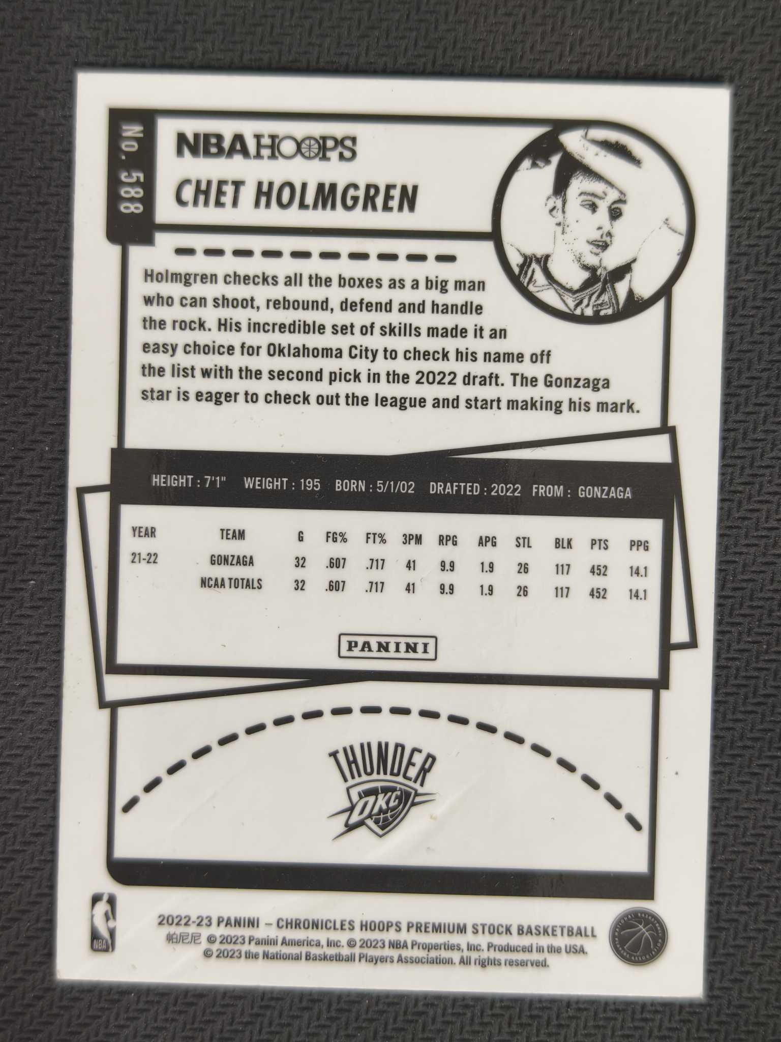 2022-23 Panini NBA Hoops Chet Holmgren RC 雷霆 切特 霍姆格伦 hoops 新秀