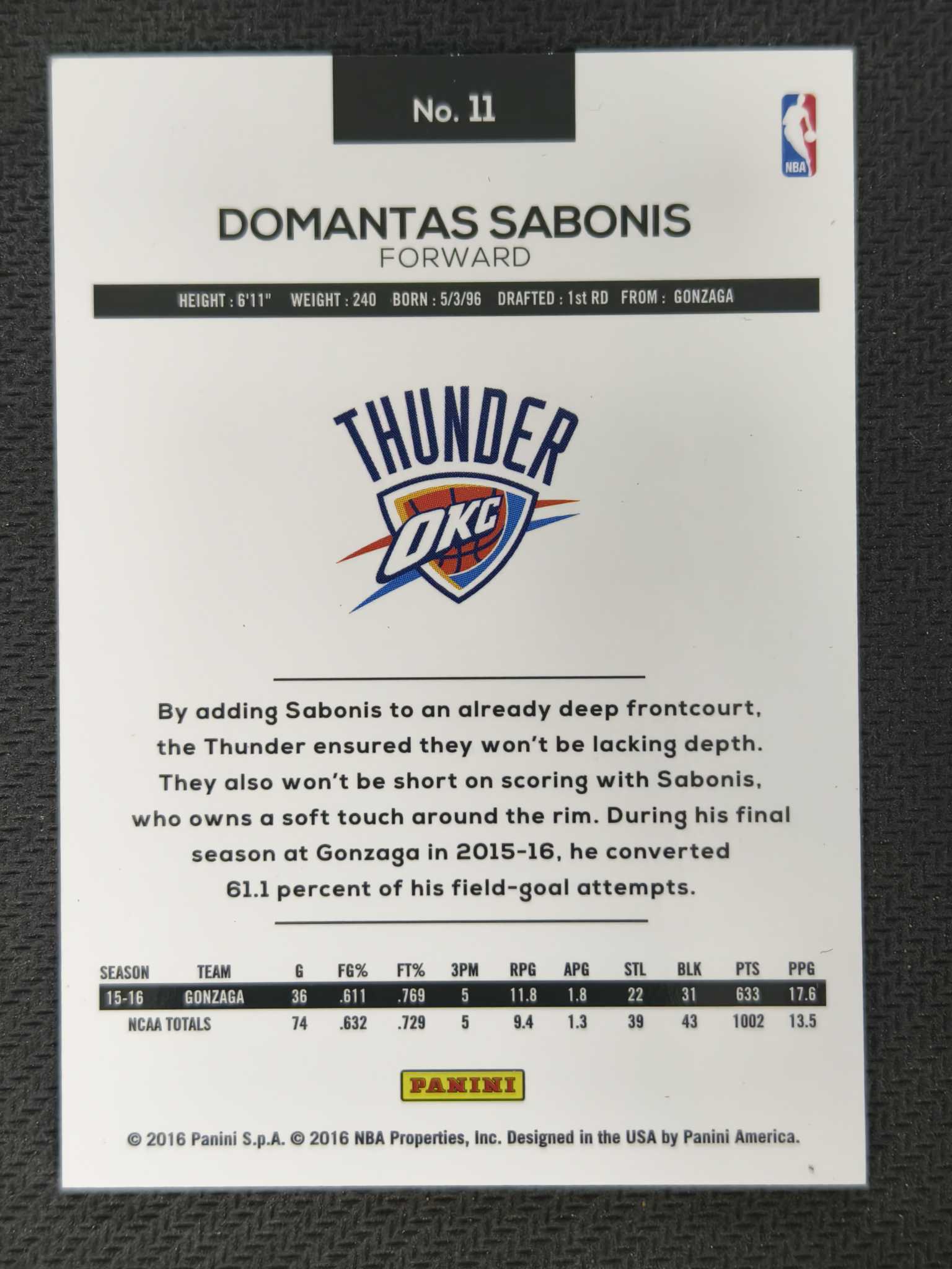 2016-17 Panini 中雅图 Domantas Sabonis RC 中亚图 雷霆新秀 多曼塔斯 萨博尼斯