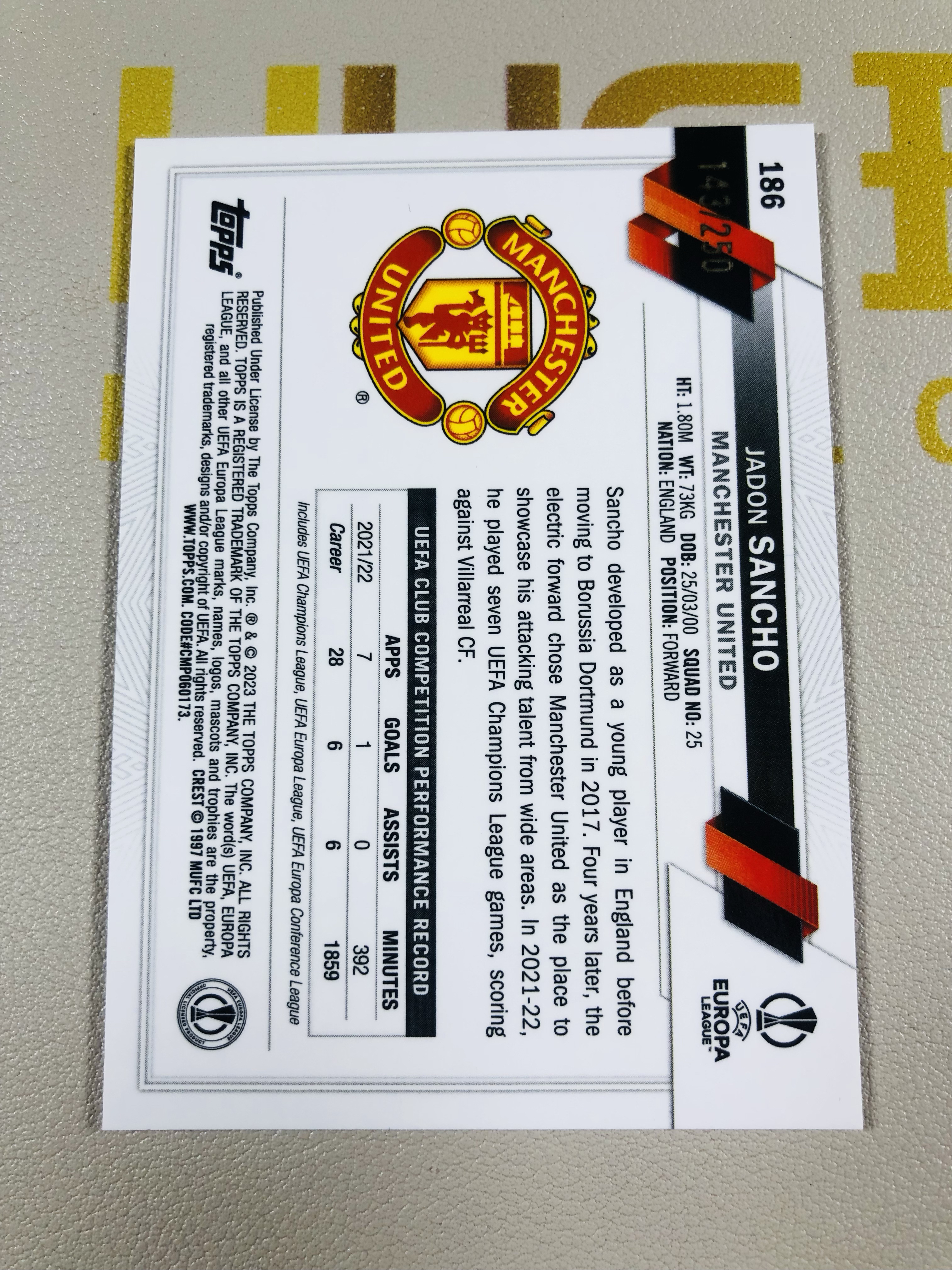 2023 Topps Chrome Jadon Sancho 欧冠 Chrome 曼联 桑乔 143/250编 单卡低于10元无卡夹介意勿拍 磁铁1118