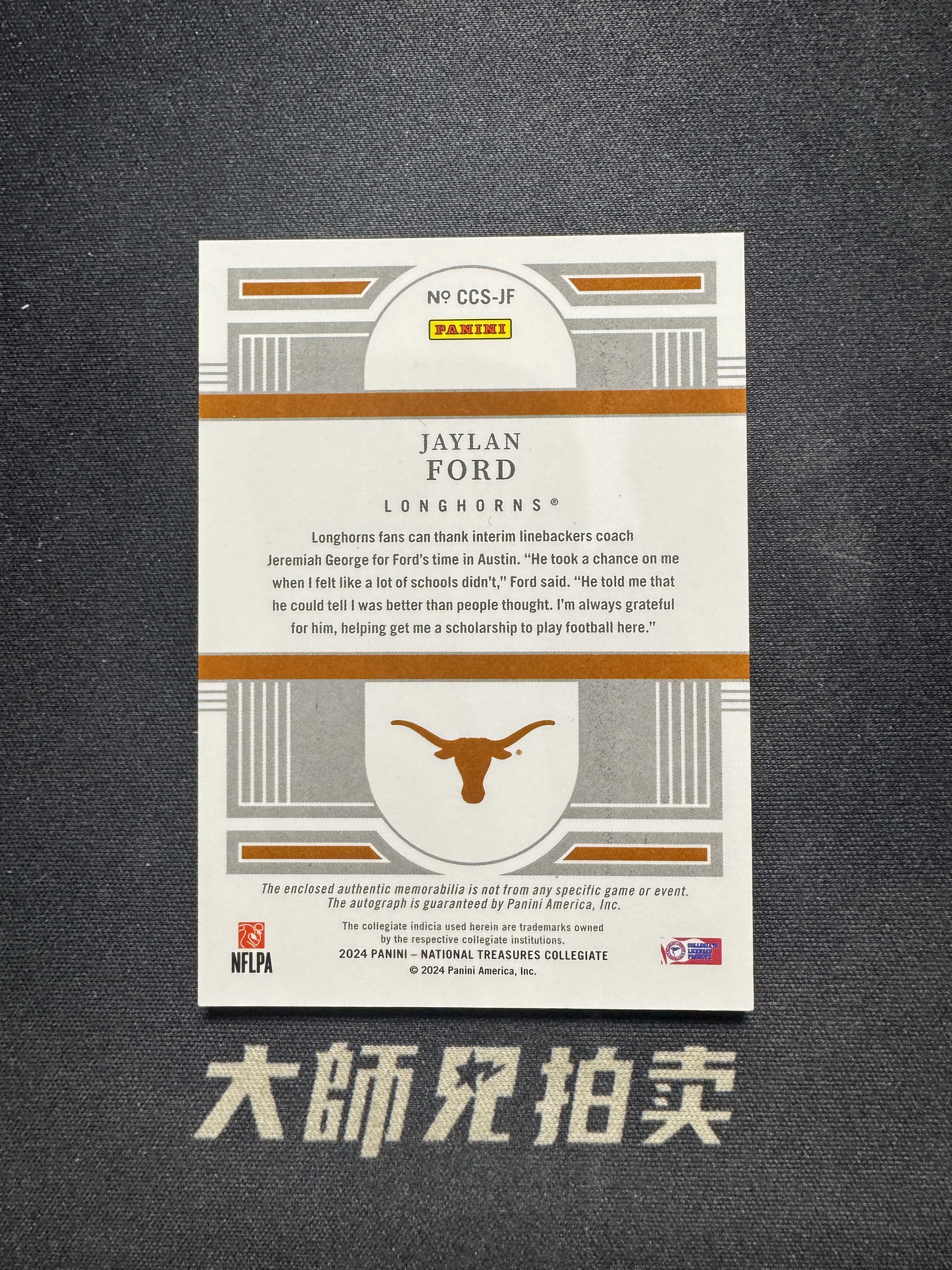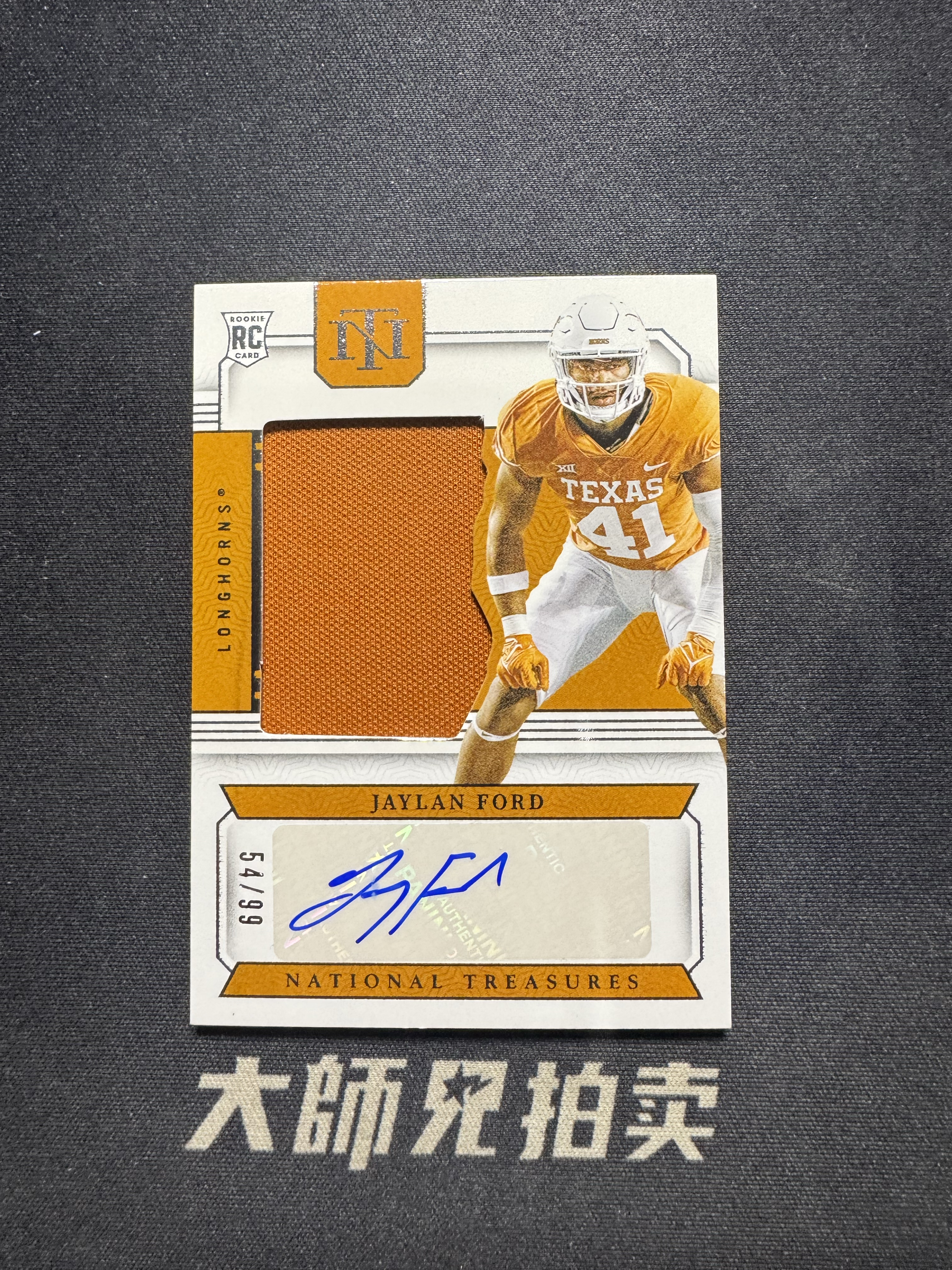 【大师兄拍卖】2024 Panini national Jaylan Ford RC 德克萨斯长角牛 杰兰 福德 新秀 大学国宝 /99编 rja 签字 球衣物料 NFL 橄榄球 通行品-marco-
