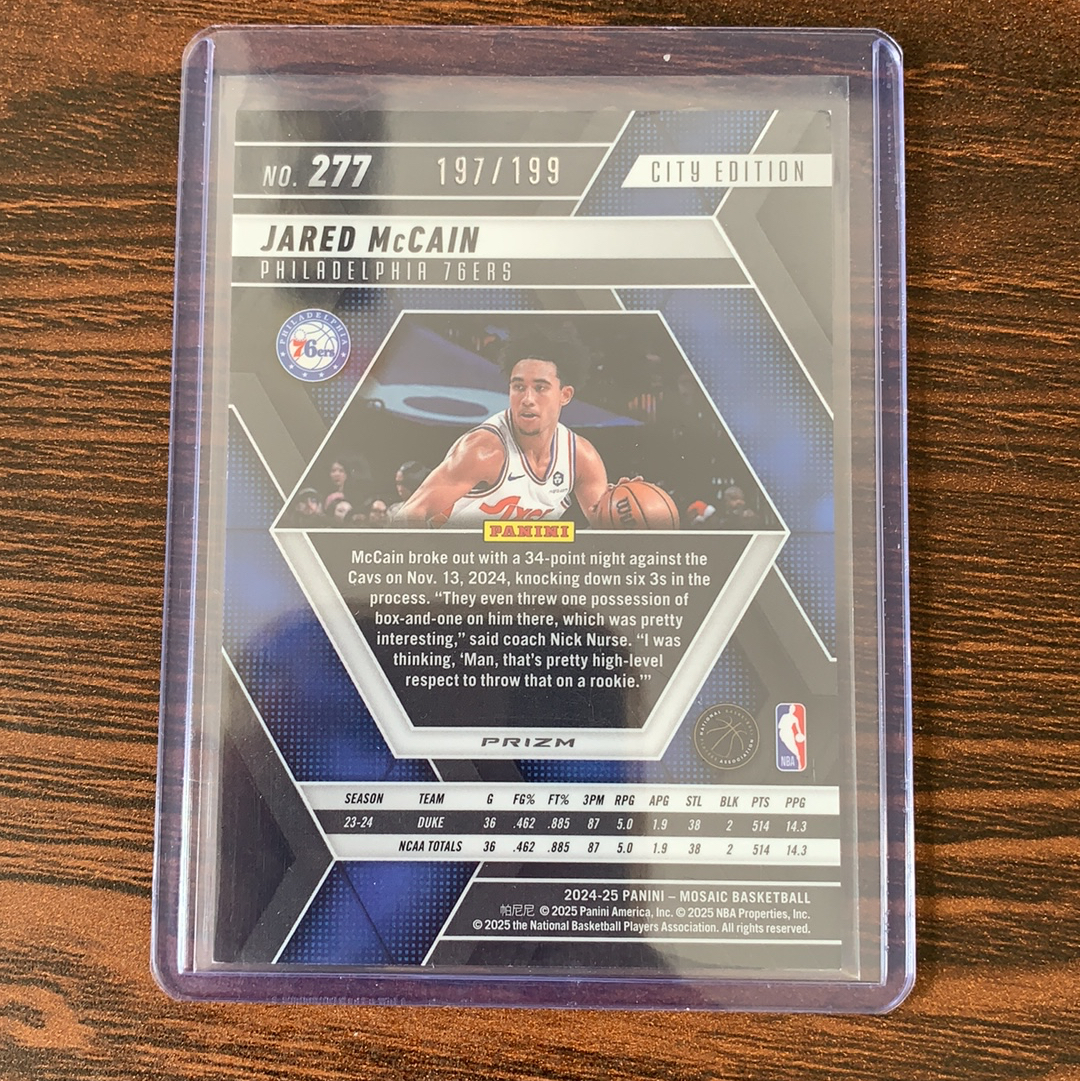 2024-25 Panini Mosaic Jared McCain RC 199编 马赛克 折射 蓝马赛克折 Colormatch 新秀卡 贾里德 麦凯恩 76人时期 卡品如图 颜