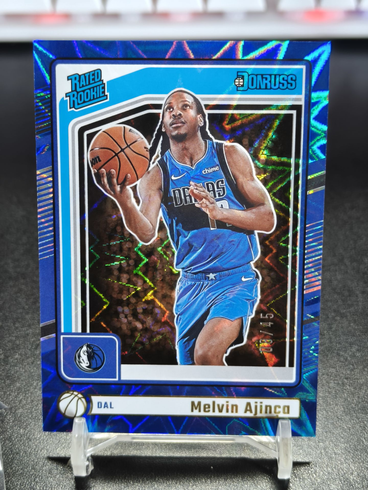 【浩行拍卖 截标预付82%】2024-25 panini donruss melvin ajinca 杜蕾斯 独行侠 梅尔文 阿金萨 rc 新秀 蓝爆炸折 折射 8/45编 瑕疵看图 专收必备「曲美」1119K01劉