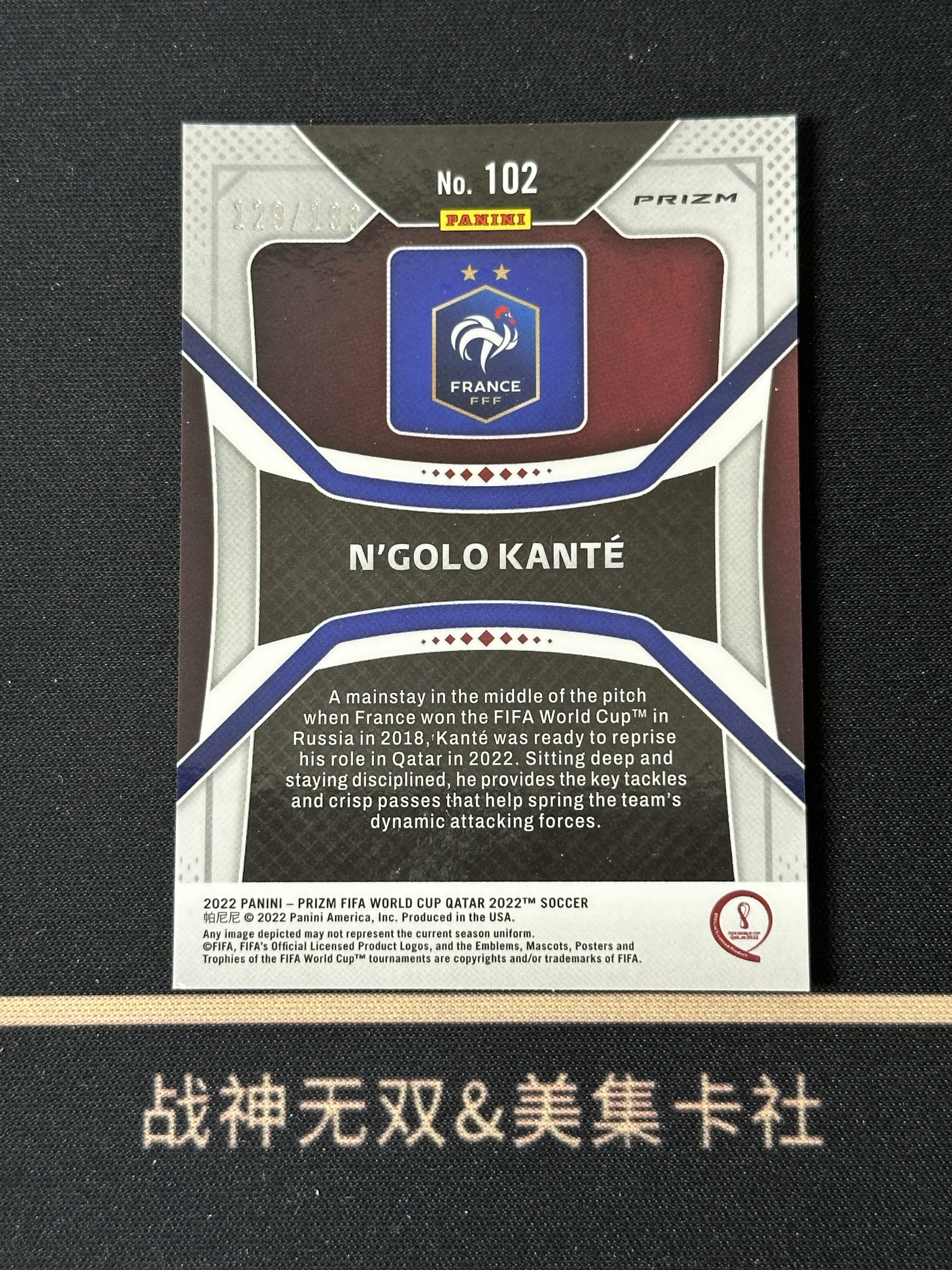 2022 Panini Prizm N'Golo Kante 恩戈洛坎 特 切尔西 英超 pz 199编 世界杯 蓝折 瑕疵 战神无双 (lm10)