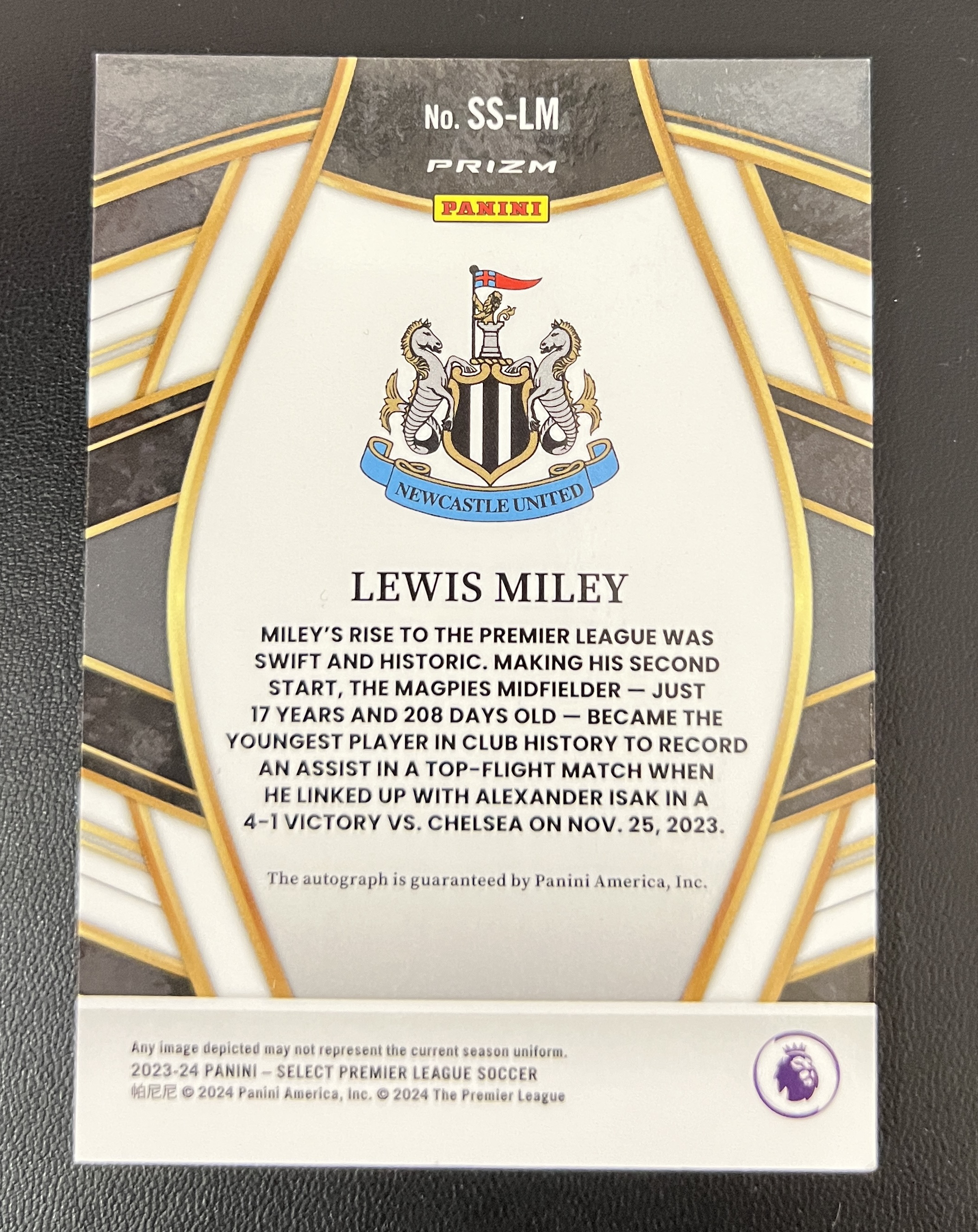2023-24 Panini Select Lewis Miley 刘易斯 米利 纽卡斯尔联 RC 新秀 银折 签字 签名 收藏必备