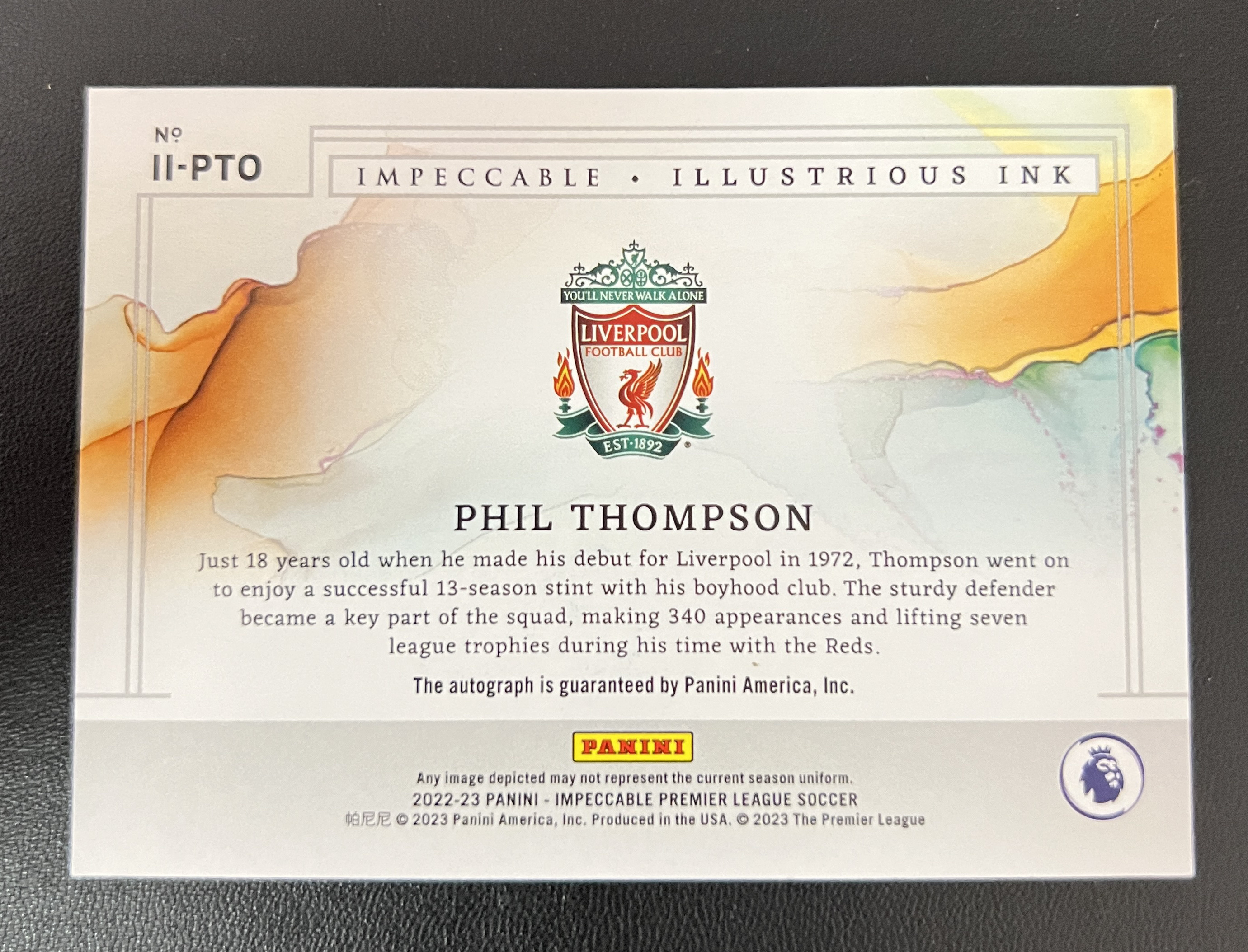 2022-23 Panini Impeccable Phil Thompson 菲尔 汤普森 利物浦 49编 签字 杰出签 卓越签 INK签 小真金 收藏必备